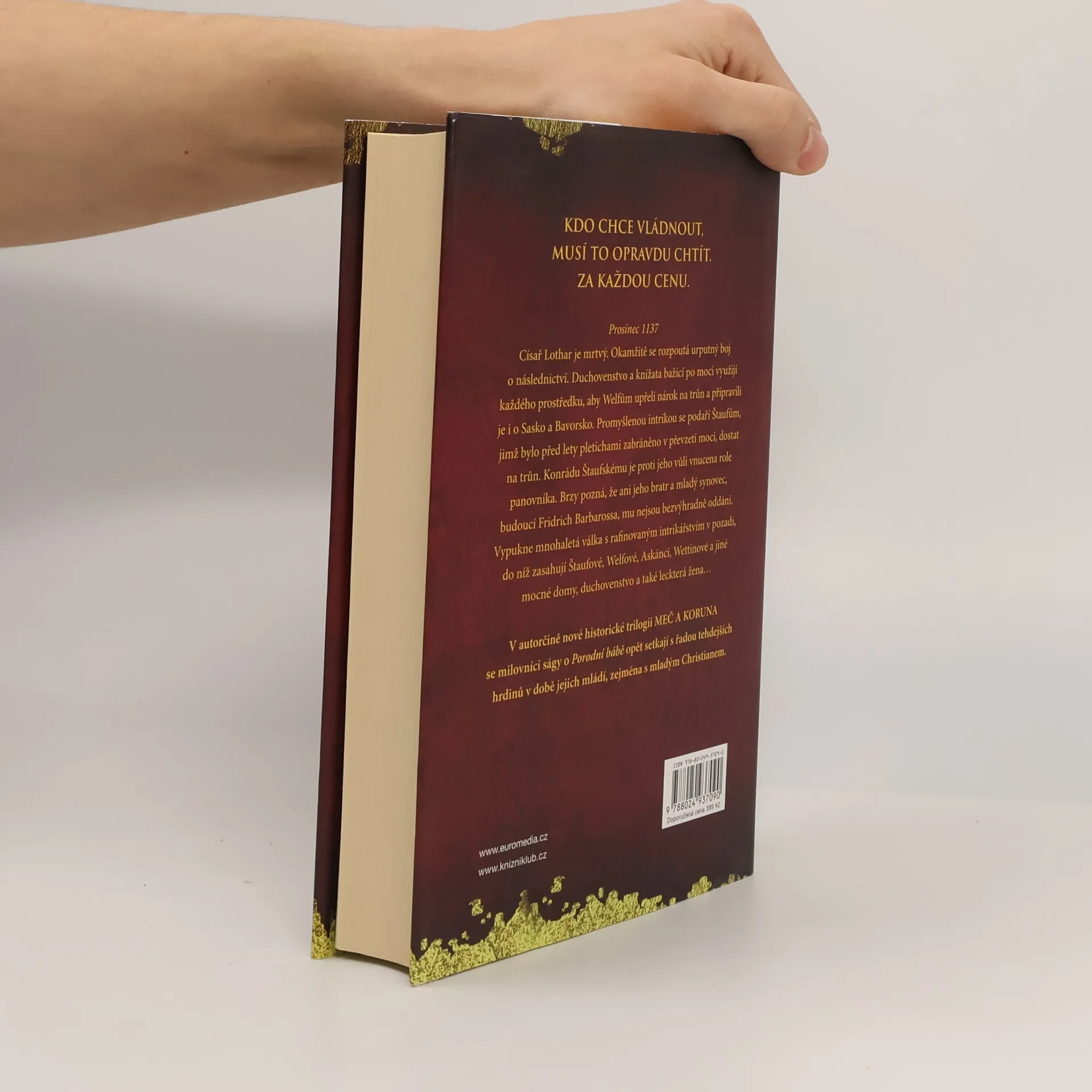 Začátek nevšední středověké trilogie MEČ A KORUNA dějově volně předchází pentalogii o Porodní bábě. Mistr mystifikace je úvod epické ságy, v níž nás autorka zavádí do pohnutých časů 12. století. Po smrti císaře Lothara v roce 1137 bojují Štaufové a Welfové o trůn, zatímco Askánci, Wettinové a jiné vlivné šlechtické rody se snaží udržet a rozšířit svá mocenská postavení. Nikdo z nich se neštítí jakéhokoli prostředku k dosažení svého cíle: intrik, zrady, vynucených manželských svazků ani otevřené války. Vazalové se musí rozhodnout, na kterou stranu se postaví, mladičké dívky jsou zavlečeny jako záruka věrnosti, některé ženy mají strach, jiné naopak v sobě najdou sílu se prosadit. Sledujeme vzestup Fridricha Barbarossy v nejmocnějšího panovníka středověku i pohnutý osud mladičké Kunigundy z Plötzkau, která musí překonat sama sebe. Milovníci historické ságy Sabine Ebertové o Porodní bábě se v této nové trilogii setkají s řadou tehdejších protagonistů v době jejich mládí, zejména s mladým Christianem.