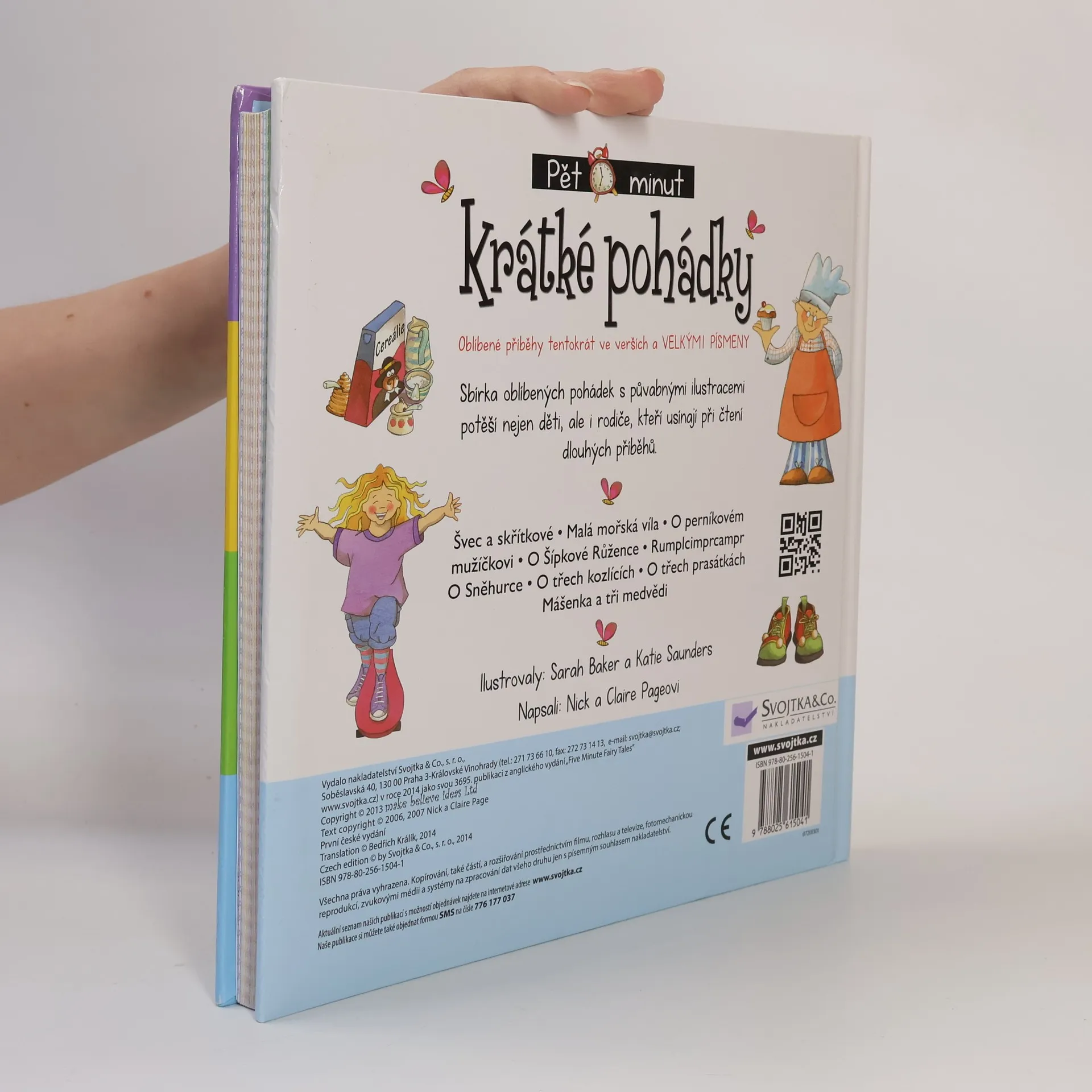 Švec a skřítkové, Malá mořská víla, Perníkový mužíček, O Šípkové Růžence, Rumplcimprcampr, O Sněhurce, O třech kozlících, O třech prasátkách, Mášenka a tři medvědi – tato sbírka půvabně ilustrovaných oblíbených pohádek, které jsou tentokrát ve verších a psané velkými tiskacími písmeny, potěší nejen děti, ale také rodiče, kteří usínají při čtení dlouhých pohádek. Začtěte se do pětiminutových pohádek a vychutnejte si společně se svými dětmi ty nejsladší okamžiky před usnutím!