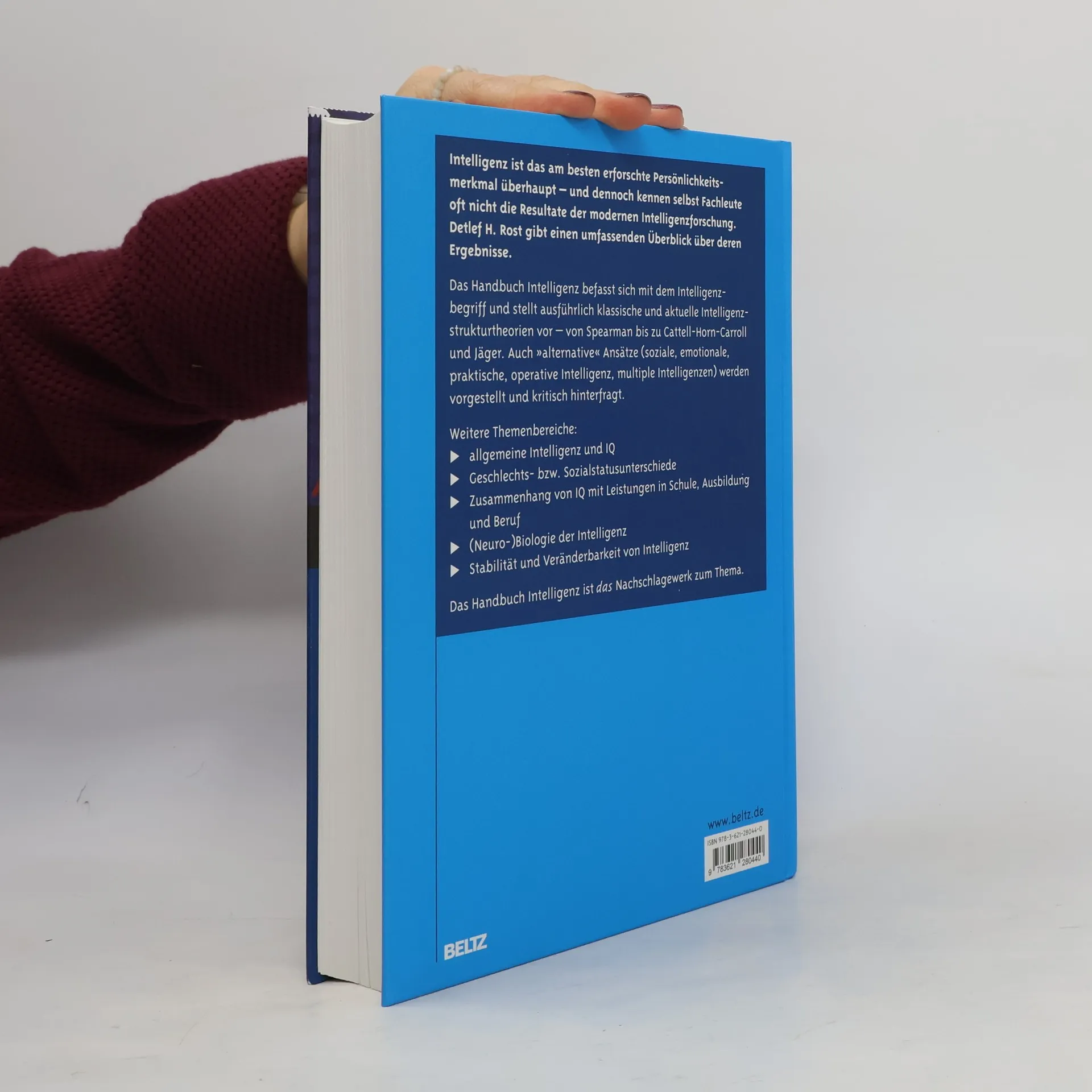 Alle reden über Intelligenz, aber wer weiß, was damit wirklich gemeint ist? Obwohl Intelligenz das am besten erforschte Persönlichkeitsmerkmal ist, kennen selbst Fachleute oft nicht die Resultate der modernen Intelligenzforschung. Detlef H. Rost gibt einen umfassenden Überblick über den aktuellen Stand der Forschung. Er setzt sich mit dem Intelligenzbegriff auseinander und stellt ausführlich klassische und aktuelle Intelligenzstrukturtheorien vor. Alternative Ansätze werden diskutiert und kritisch hinterfragt. Es folgen Erläuterungen zu verschiedenen, mit Intelligenz verbundenen Bereichen. Das Nachschlagewerk für alle, die sich für das Thema interessieren.