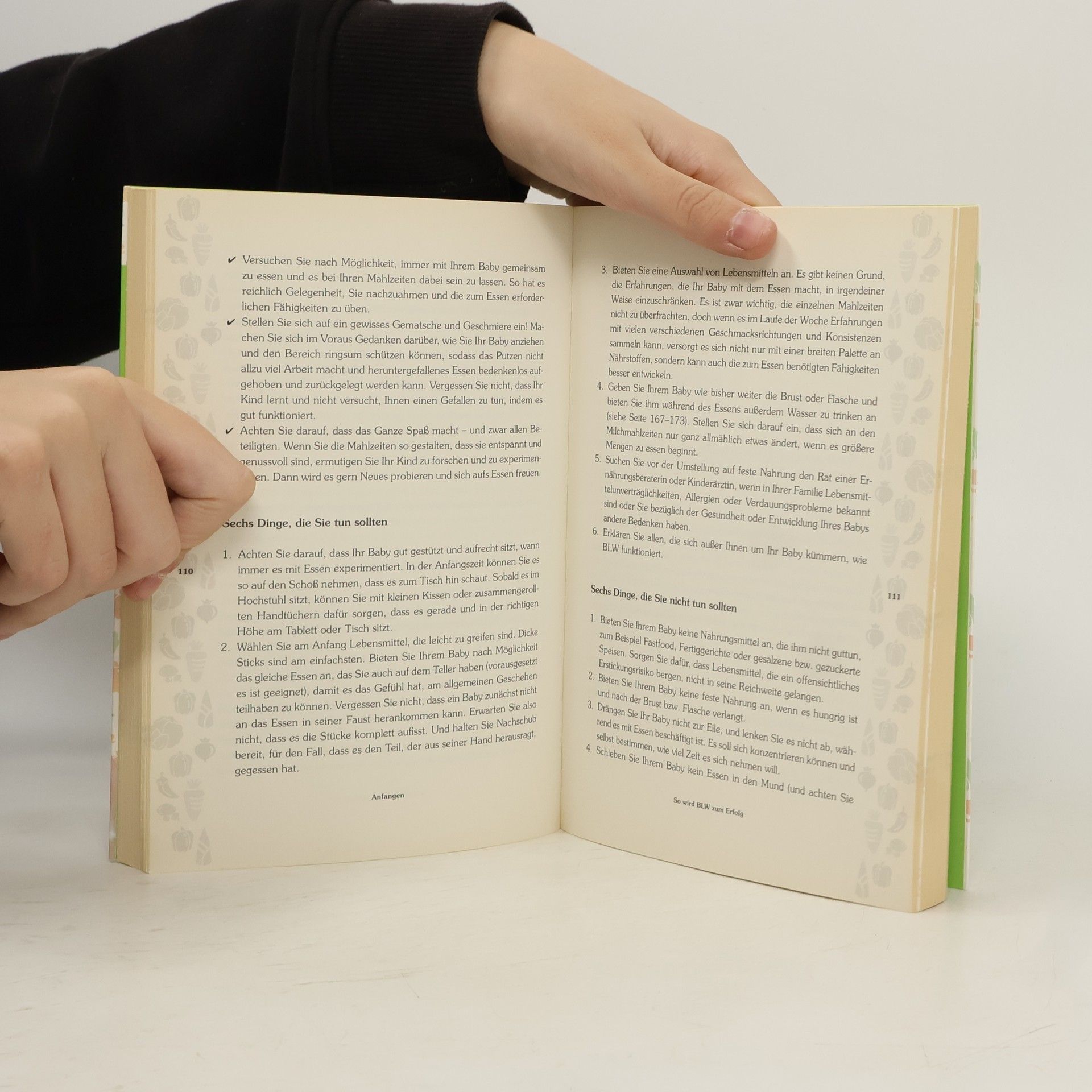 Was Babys wirklich wollen Beim Erfolgskonzept Baby-led Weaning (kurz BLW) bekommen Kinder ab dem Beikostalter statt Brei feste Nahrung angeboten, die sie selbstständig essen können. BLW unterstützt das Kind in seinen Entwicklungsschritten, fördert seine Eigenständigkeit, macht Schluss mit den gewohnten »Brei-Fütter-Schlachten« und hilft Kindern, ernährungsbewusste Erwachsene zu werden. Mit diesem Grundlagenbuch von Rapley und Murkett wurde BLW auch in Deutschland populär. Unter Berücksichtigung des neuesten Stands der Wissenschaft wurde es komplett überarbeitet und erweitert. Ergänzt wurden u. a. neueste Informationen zu Allergien, sicherem Füttern und der Anwendung von BLW in der Kinderbetreuung. Ausstattung: Mit 8-seitigem Farbbogen