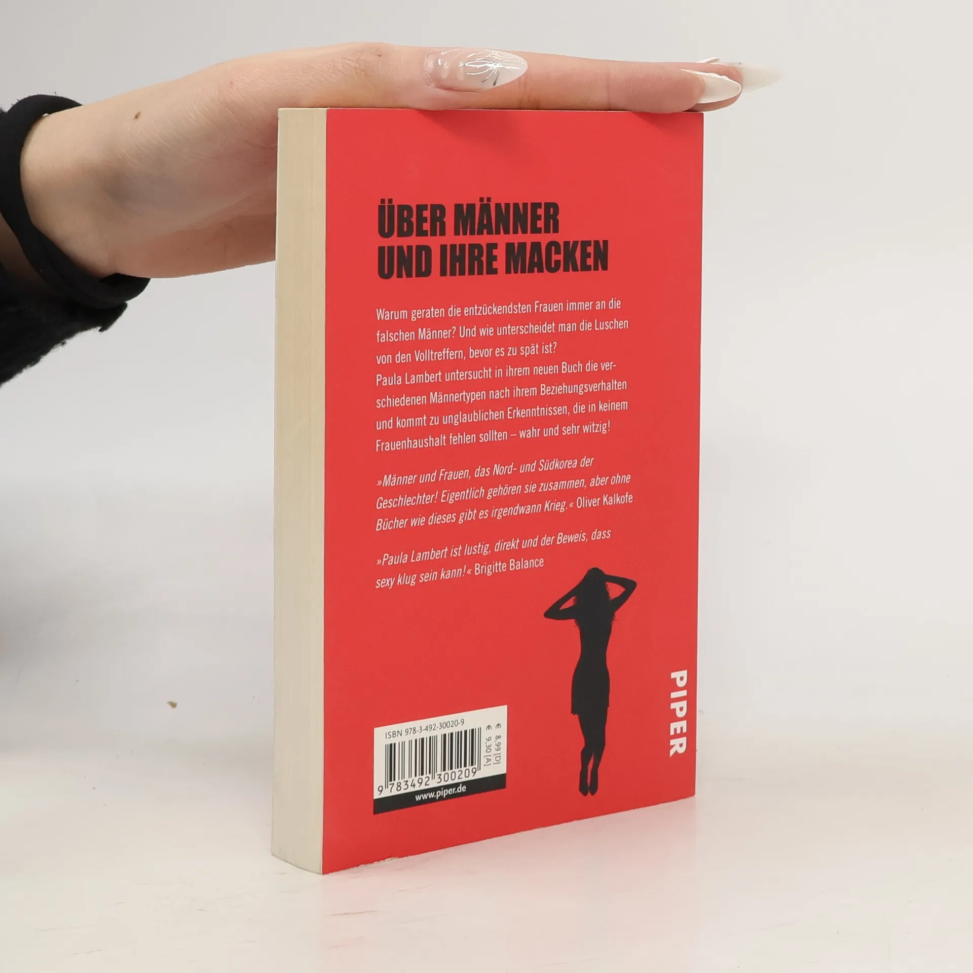 Warum geraten die entzückendsten Frauen immer an die falschen Männer? Und wie unterscheidet man die Luschen von den Volltreffern, bevor es zu spät ist? Paula Lambert untersucht in ihrem neuen Buch die verschiedenen Männertypen nach ihrem Beziehungsverhalten und kommt zu unglaublichen Erkenntnissen, die in keinem Single-Haushalt fehlen sollten - wahr und sehr witzig!