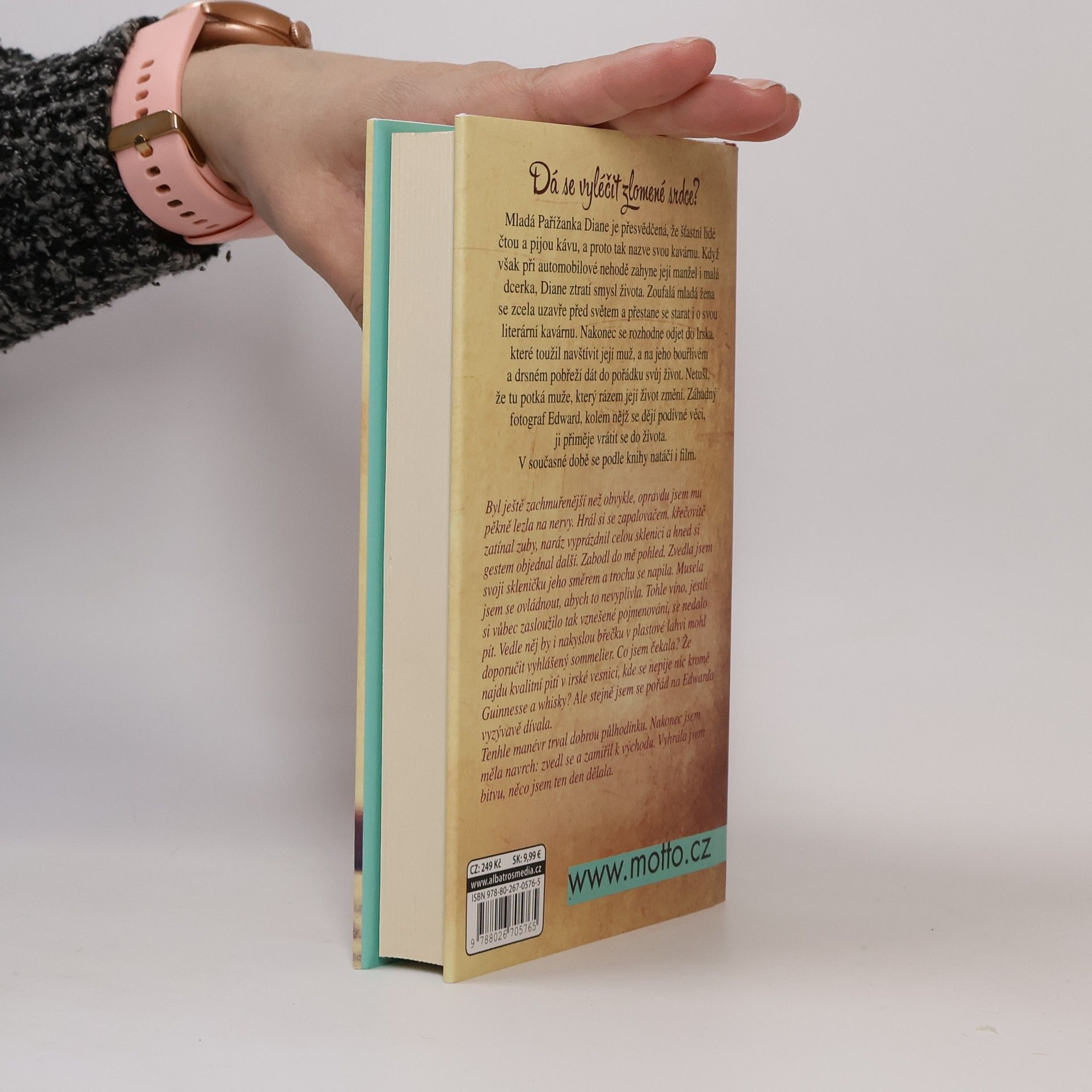 Dá se vyléčit zlomené srdce? Mladá Pařížanka Diane je přesvědčená, že šťastní lidé čtou a pijou kávu, a proto tak nazve svou kavárnu. Když však při automobilové nehodě zahyne její manžel i malá dcerka, Diane ztratí smysl života. Zcela se uzavře před světem a přestane se starat i o svou literární kavárnu. Nakonec se rozhodne odjet do Irska, které toužil navštívit její muž, a na jeho bouřlivém a drsném pobřeží dát do pořádku svůj život. Netuší, že tu potká muže, který rázem její život změní. Záhadný fotograf Edward, kolem nějž se dějí podivné věci, ji přiměje vrátit se do života. V současné době se podle knihy natáčí i film.