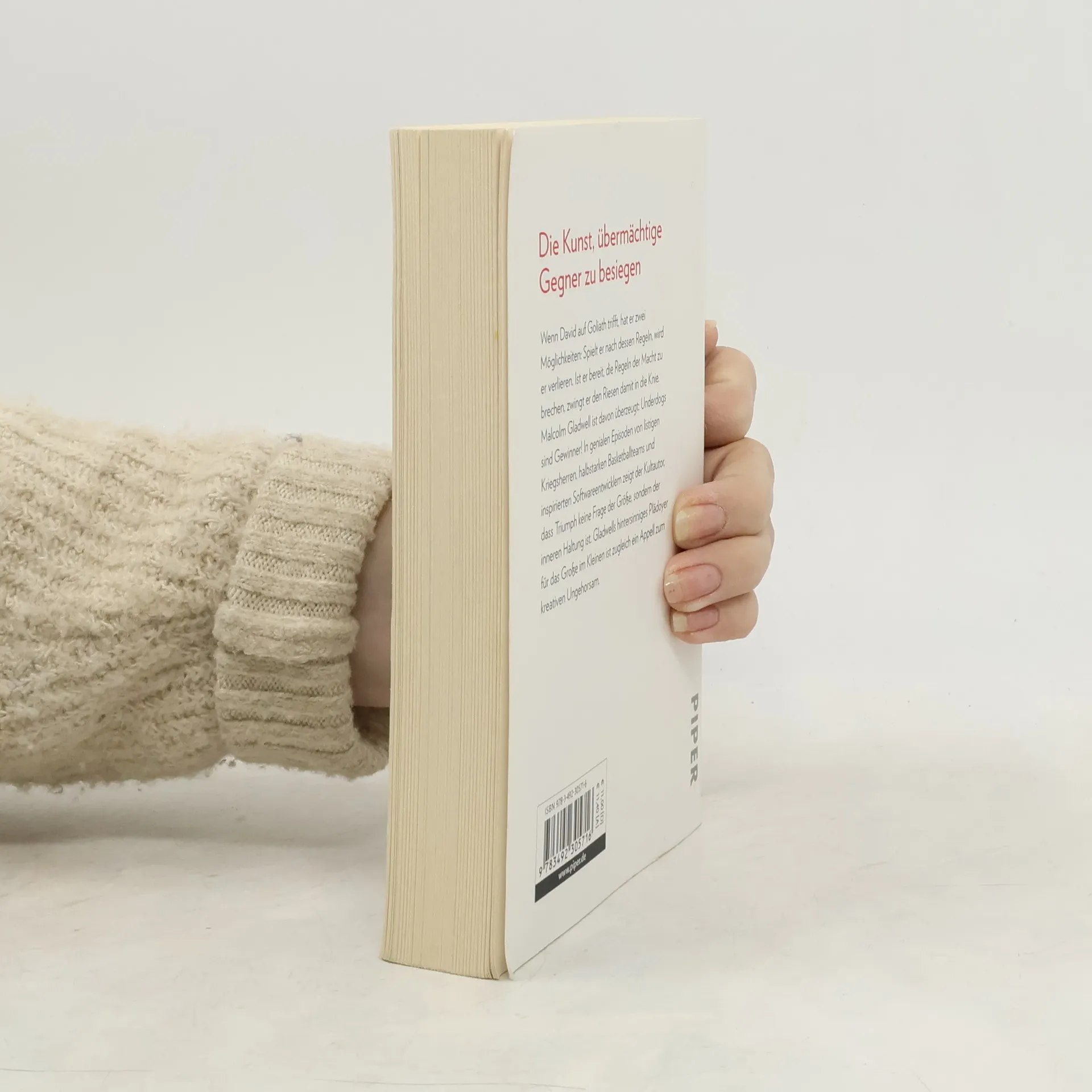 »David und Goliath« erzählt von gewöhnlichen Menschen, die sich Riesen entgegenstellen. Gegen erdrückende Mächte können auch scheinbar unterlegene Gegner siegen. Ob listige Krieger, geschickte Sportler oder geniale Softwareingenieure: Gladwell zeigt mit einer Fülle von Beispielen und in dem von ihm gewohnten originell-argumentierenden wie sorgfältig begründeten Stil, dass Triumph keine Frage der Größe, sondern der inneren Haltung ist. Lehrreich und spannend!