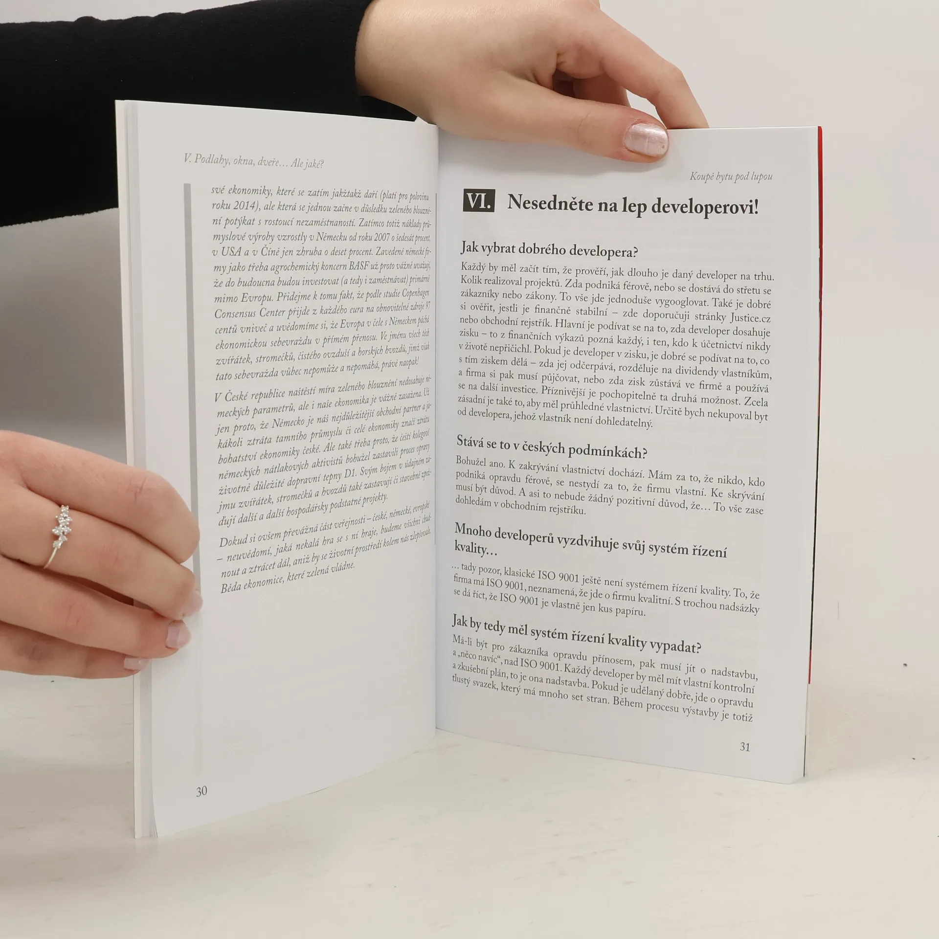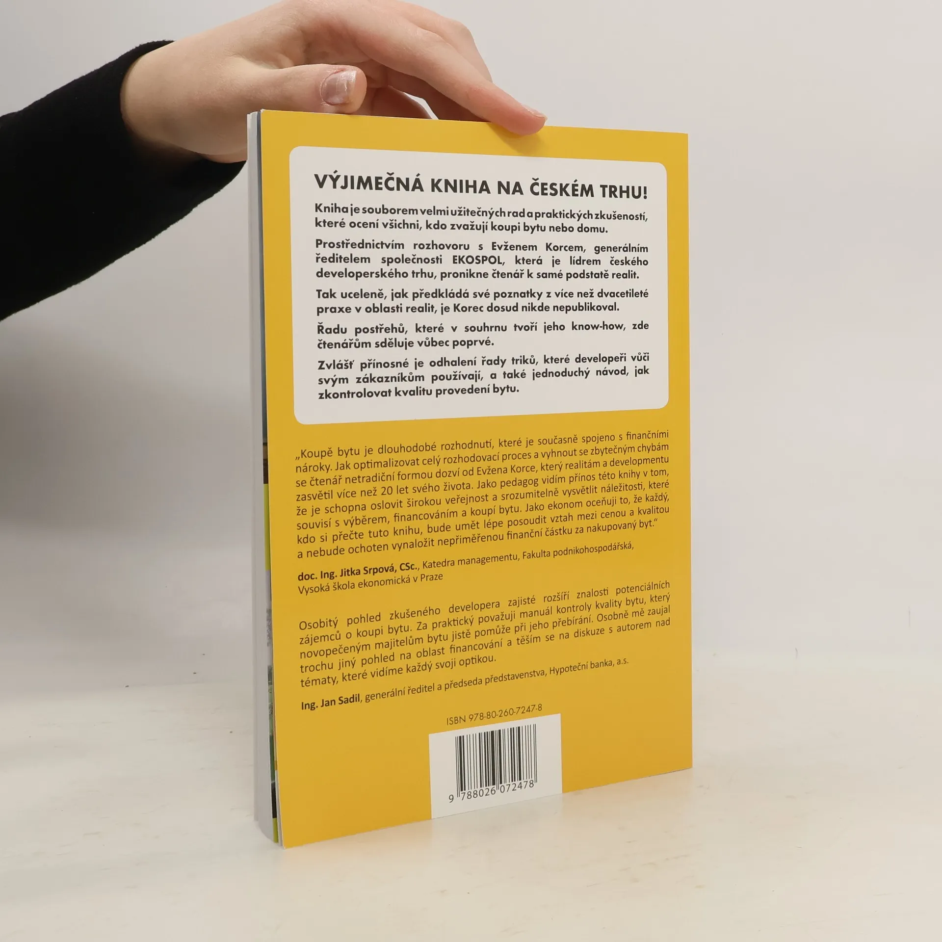 Kniha je souborem velmi užitečných rad a praktických zkušeností, které ocení všichni, kdo zvažují koupi bytu nebo domu. Prostřednictvím rozhovoru s Evženem Korcem, generálním ředitelem společnosti EKOSPOL, která je lídrem českého developerského trhu, pronikne čtenář k samé podstatě realit. Tak uceleně, jak předkládá své poznatky z více než dvacetileté praxe v oblasti realit, je Korec dosud nikde nepublikoval. Řadu postřehů, které v souhrnu tvoří jeho know-how, zde čtenářům sděluje vůbec poprvé. Zvlášť přínosné je odhalení řady triků, které developeři vůči svým zákazníkům používají a také jednoduchý návod, jak zkontrolovat kvalitu provedení bytu.