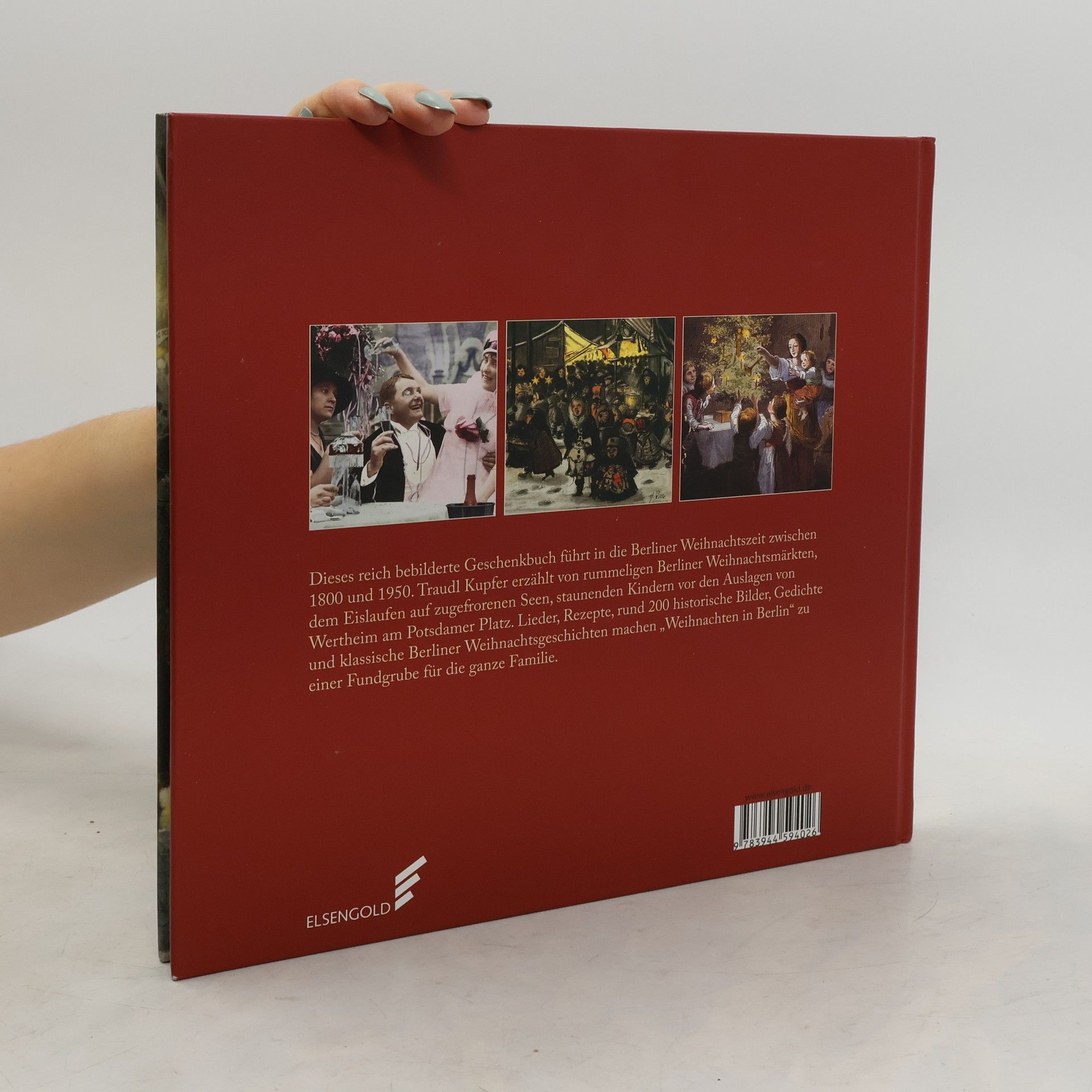 Dieses reich bebilderte Geschenkbuch führt in die Berliner Weihnachtszeit zwischen 1800 und 1950. Traudl Kupfer erzählt von rummeligen Berliner Weihnachtsmärkten, dem Eislaufen auf zugefrorenen Seen, staunenden Kindern vor Auslagen von Wertheim am Potsdamer Platz. Lieder, Rezepte, rund 200 historische Bilder, Gedichte und klassische Berliner Weihnachtsgeschichten machen das Buch zu einer Fundgrube für die ganze Familie.