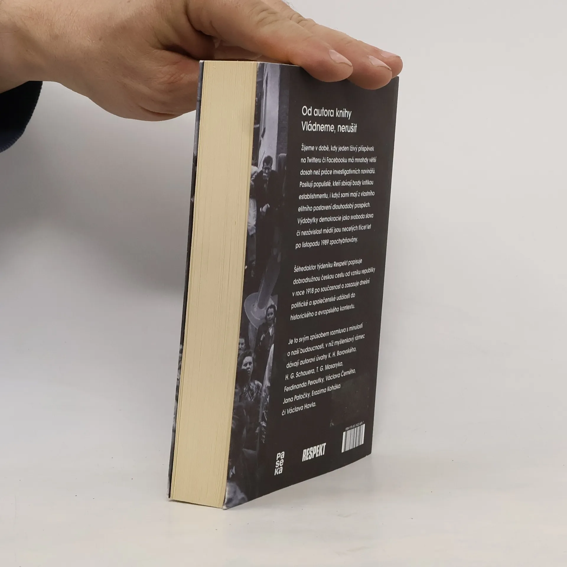 Česká cesta od Masaryka k Babišovi. Žijeme v době, kdy jeden lživý příspěvek na Twitteru či Facebooku má větší dosah než systematická práce investigativních novinářů. Posilují populisté, kteří sbírají body kritikou establishmentu, i když sami mají z vlastního elitního postavení dlouhodobý prospěch. Výdobytky demokracie jako svoboda slova či nezávislost médií jsou necelých třicet let po listopadu 1989 zpochybňovány. Šéfredaktor týdeníku Respekt popisuje dobrodružnou českou cestu od vzniku republiky po současnost a zasazuje dnešní politické a společenské události do historického a evropského kontextu. Je to svým způsobem rozmluva s minulostí o naší budoucnosti, v níž myšlenkový rámec dávají autorovi úvahy K. H. Borovského, H. G. Schauera, T. G. Masaryka, Ferdinanda Peroutky, Václava Černého, Jana Patočky, Erazima Koháka či Václava Havla. S odkazem na velké kritické duchy demokratické tradice Tabery jasně ukazuje, že rizikům přítomnosti se nejlépe čelí nikoliv panikou, ale chladnou hlavou a rozhodností.