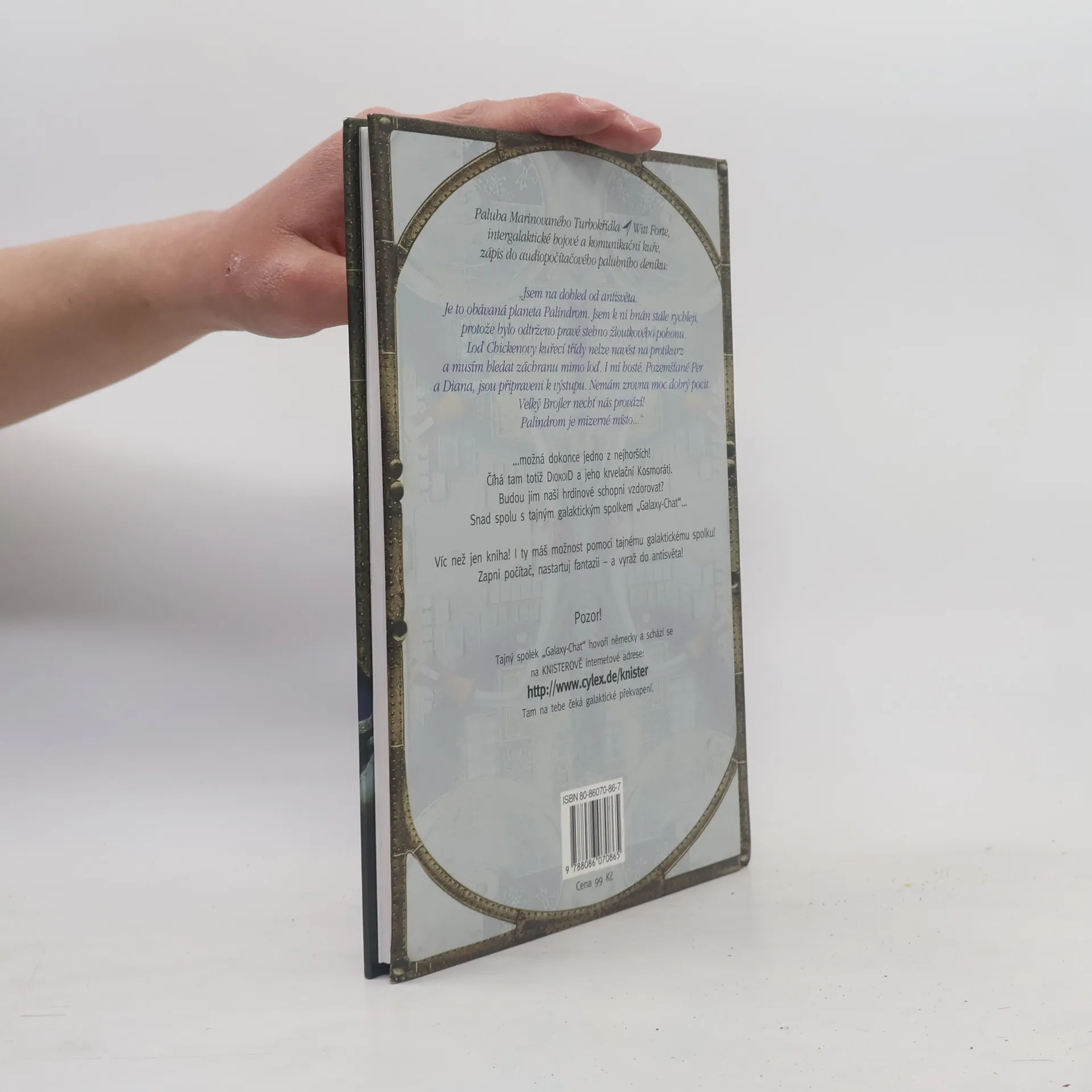 Paluba Marinovaného Turbokřídla Witt Forte, intergalaktické bojové a komunikační kuře, zápis do audiopočítačového palubního deníku: „Jsem na dohled od antisvěta. Je to obávaná planeta Palindrom. Jsem k ní hnán stále rychleji, protože bylo odtrženo pravé stehno žloutkového pohonu. Loď Chickenovy kuřecí třídy nelze navést na protikurz a musím hledat záchranu mimo loď. I mí hosté, Pozemšťané Per a Diana, jsou připraveni k výstupu. Nemám zrovna moc dobrý pocit. Velký Brojler nechť nás provází! Palindrom je mizerné místo..." ...možná dokonce jedno z nejhorších! Číhá tam totiž DioxoiD a jeho krvelační Kosmoráti. Budou jim naši hrdinové schopni vzdorovat? Snad spolu s tajným galaktickým spolkem „Galaxy-Chat"... Víc než jen kniha! I ty máš možnost pomoci tajnému galaktickému spolku! Zapni počítač, nastartuj fantazii - a vyraž do antisvěta!
