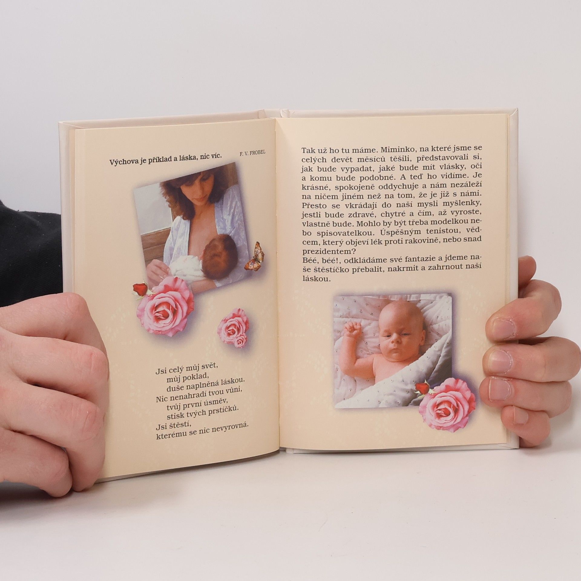 Kniha k narození miminka plná citátů . Je upravena o záznamech o miminku, váha, výška, první zub atd. Skvělý dárek novopečeným maminkám.