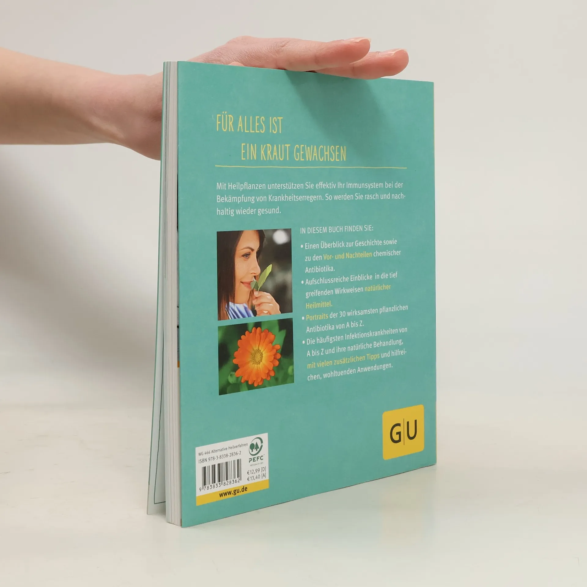Durch den häufigen Einsatz von Antibiotika haben viele Keime Resistenzen dagegen entwickelt, was im Fall von Infektionen gefährlich werden kann, da die Antibiotika dann nicht mehr wirken. Doch die Natur besitzt ihre eigenen, nebenwirkungsfreien Antibiotika. Viele Pflanzen, ätherische Öle und Lebensmittel wirken, richtig eingesetzt, antibiotisch und werden darum als natürliche Antibiotika bezeichnet. Dazu gehören z. B. Knoblauch, Honig und Zitrone, aber auch Ringelblume, Teebaumöl und Propolis. Dieser Ratgeber zeigt, welche natürlichen Antibiotika es gibt, bei welchen häufigen Beschwerden sie wirken, wie sie im Krankheitsfall angewendet werden, wie man sie leicht selbst zubereiten kann und welche Präparate erhältlich sind.