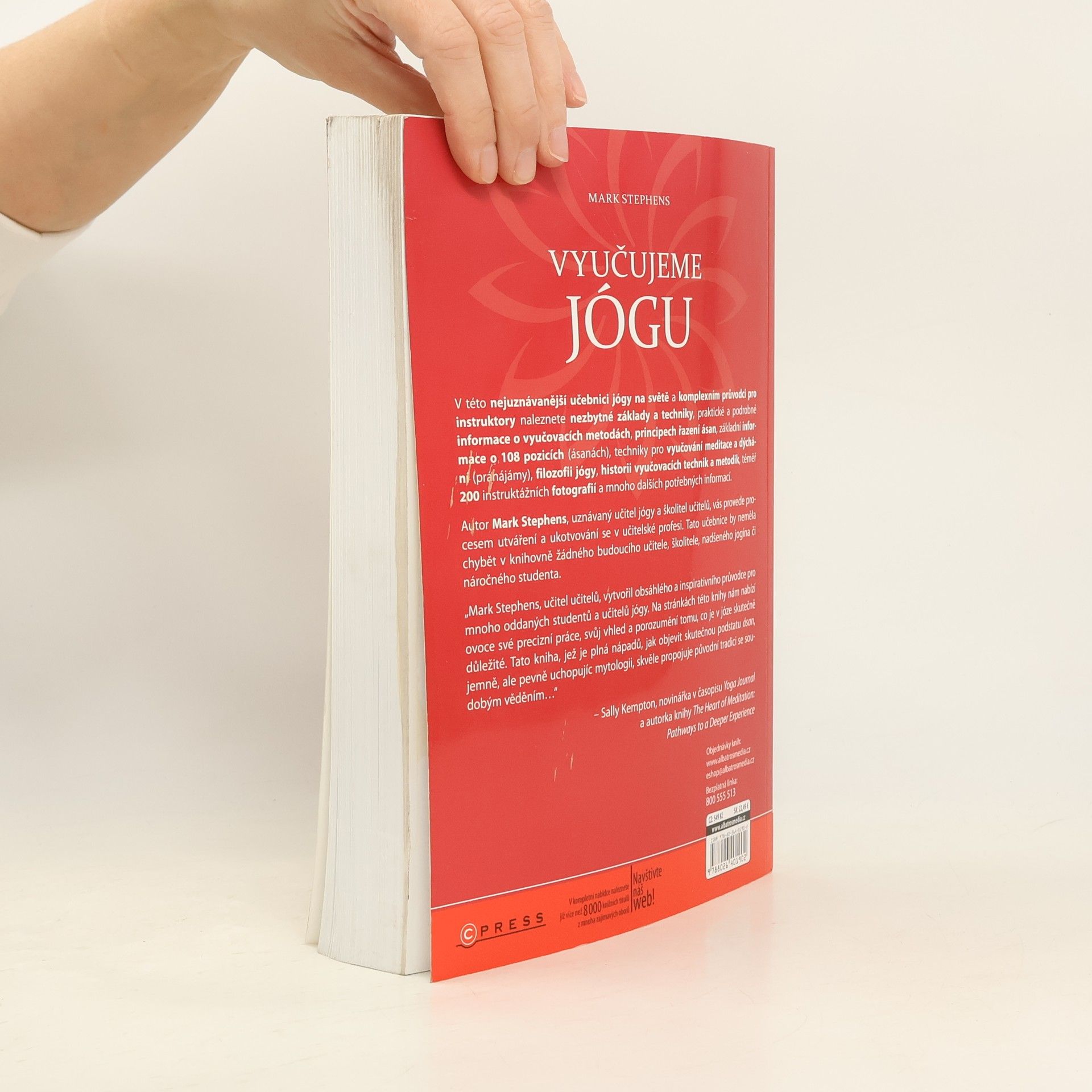 V této nejuznávanější učebnici jógy na světě a komplexním průvodci pro instruktory naleznete nezbytné základy a techniky, praktické a podrobné informace o vyučovacích metodách, principech řazení ásan, základní informace o 108 pozicích (ásanách), techniky pro vyučování meditace a dýchání (pránájámy), filozofii jógy, historii vyučovacích technik a metodik, téměř 200 instruktážních fotografií a mnoho dalších potřebných informací. _ Autor Mark Stephens, uznávaný učitel jógy a školitel učitelů vás provede procesem utváření a ukotvování se v učitelské profesi. Tato učebnice by neměla chybět v knihovně žádného budoucího učitele, školitele, nadšeného jogína či náročného studenta.