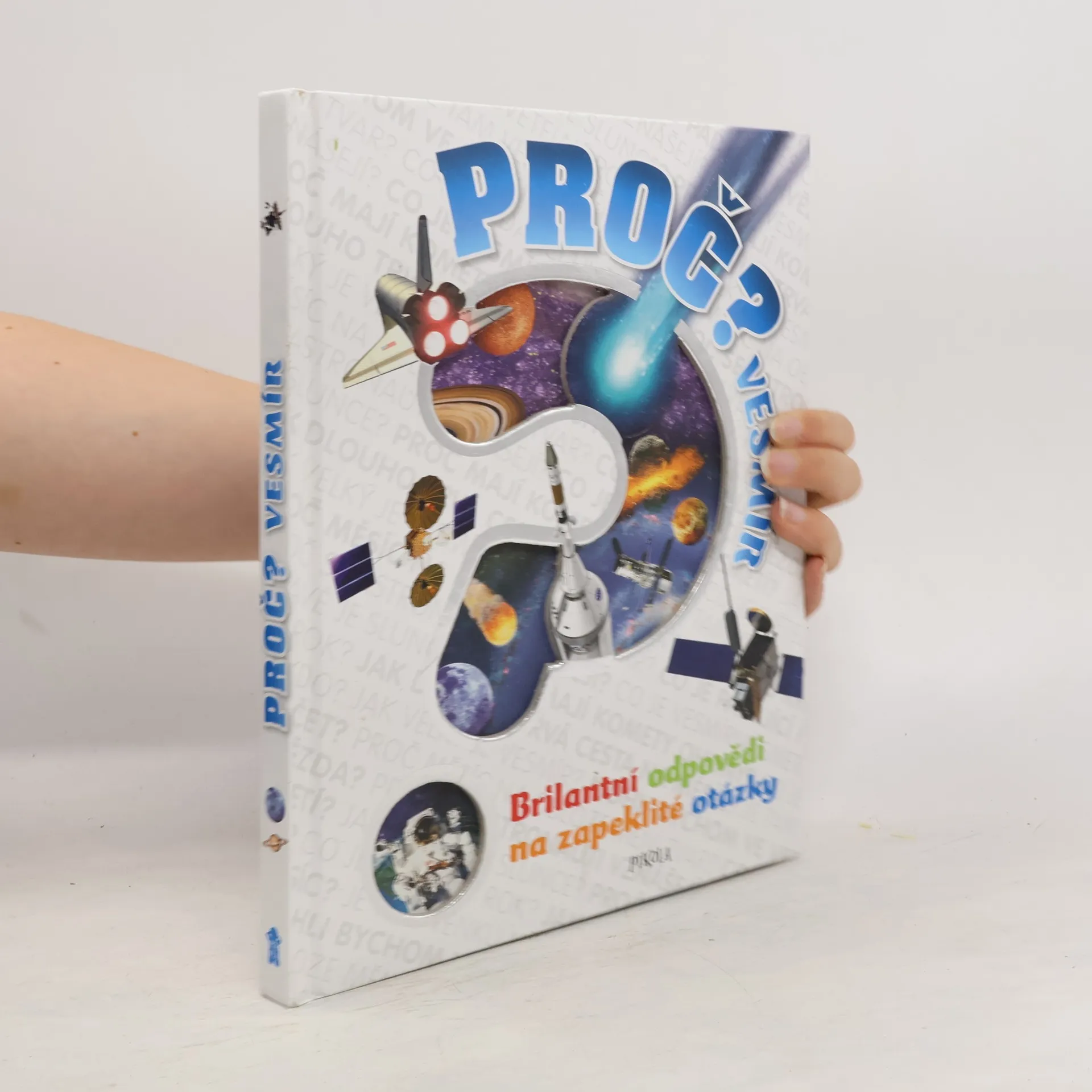 Brilantní odpovědi na zapeklité otázky, to je podnázev této encyklopedie o vesmíru, určené pro děti mladšího školního věku. – Mohli bychom ve vesmíru křičet? Proč Měsíc na obloze mění tvar? Co je padající hvězda? Co je vesmírné smetí? Proč se astronauti vznášejí? – Na více než 200 otázek o sluneční soustavě, hvězdách, galaxiích či průzkumu vesmíru dostávají děti jasné, srozumitelné a uspokojivé odpovědi plné informací, doprovázených fascinujícími fotografiemi.