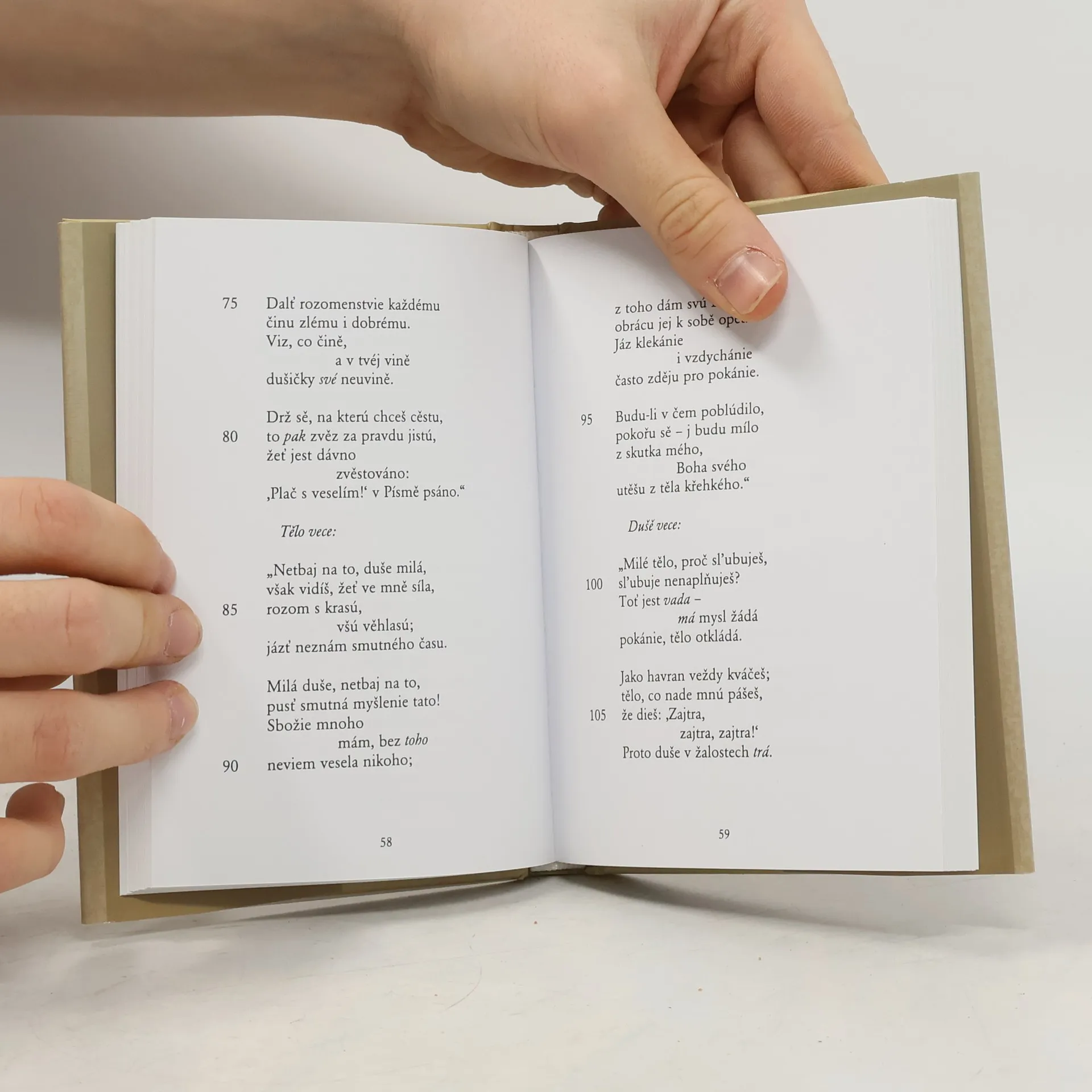 Staročeská básnická skladba Spor duše s tělem, již vydal v moderní době poprvé Roman Jakobson v roce 1927. Přihlédnuto je i k novým výsledkům literárně historického bádání. Mohou ji doprovodit slova Vladislava Vančury k prvnímu vydání: "Nuže, Jakobson, veden tvárnými zřeteli, hledal v propastech literární historie, a hle! na rozdílod zmatenců ukazujících k době veleslavínské doslova objevil gotickou báseň plnou kázně a formové harmonie."
