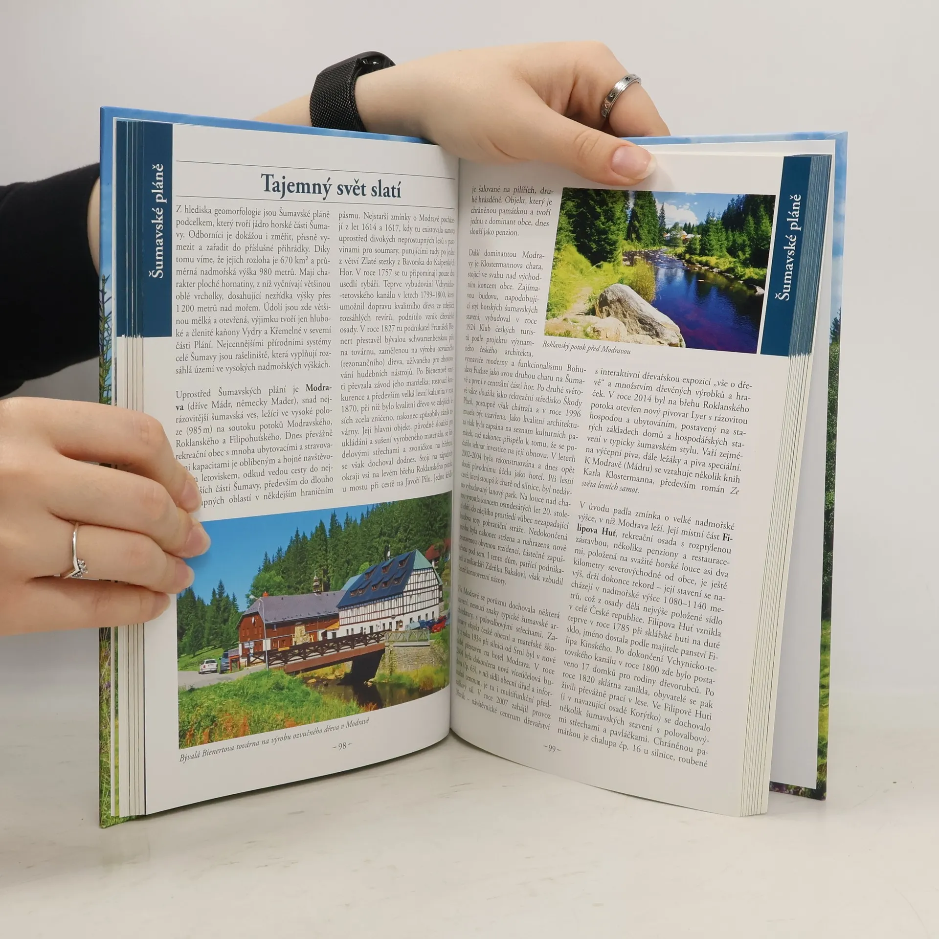Opravdový chrám přírody, největší oáza zeleně uprostřed Evropy, romantika i nostalgie, dramatické příběhy a záhady – je těžké vystihnout charakteristiku Šumavy, pohoří, ke kterému se musíme pořád vracet. Je to rozmanitá oblast, kterou je dobré poznávat více srdcem než očima, vnímat nálady a krásy v průběhu všech ročních období, hledat nová místa a vracet se na místa již navštívená. Kniha se zabývá přírodou, historií i památkami a odhaluje, jak Šumava dokáže na člověka působit a jaká tajemství skrývá. Vedle známých turistických center a historických měst (Vimperk, Prachatice) si připomeneme i zaniklé osady a vesnice, místa, která byla dlouhá roky veřejnosti nepřístupná – právě na Šumavě přece byla ta nejostřeji střežená hranice, pověstná „železná opona“. Vedle známých přírodních lokalit (Boubínský prales, Černé a Čertovo jezero) nechybí vyprávění o oblastech, kam zdaleka tolik návštěvníků nepřijde (Milešický prales), o místech znovuobjevených v posledních desetiletích (Prášilské jezero, jezero Laka, Plechý a Plešné jezero, pravý břeh Lipenské přehrady), o úžasných technických dílech (Schwarzenberský kanál), o originální architektuře (volarské domy). Závěrečnou kapitolu tvoří přehled značených turistických cest a tipy na nejhezčí výlety.