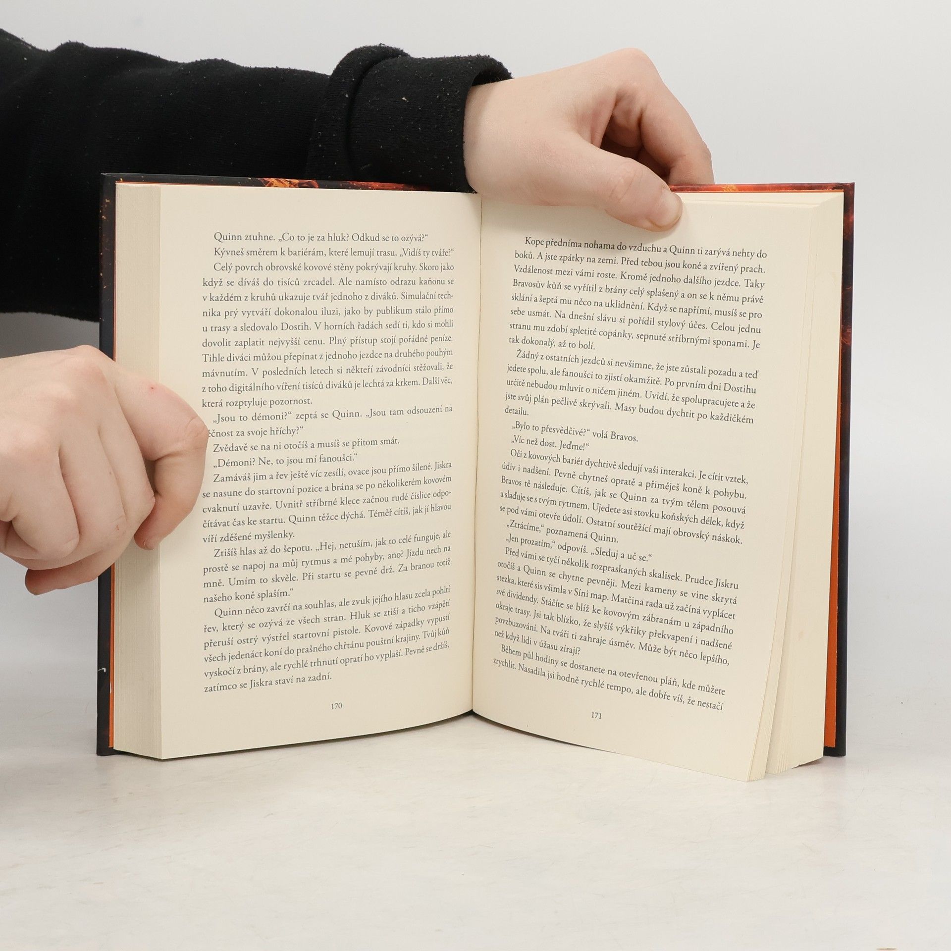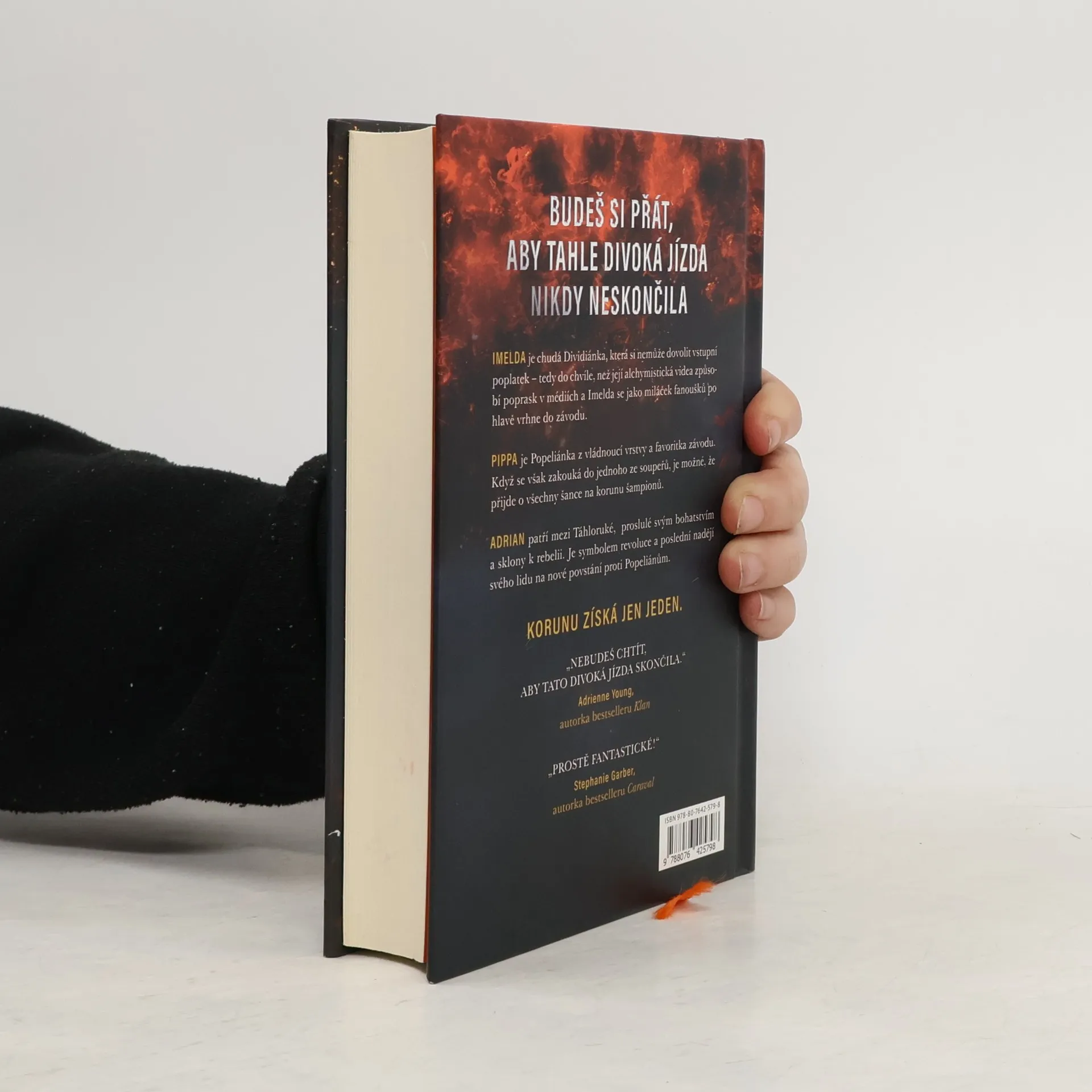 Už odedávna, kdy Popeliáni dostali od svých božstev fénixy, na nich jezdí do bitev, na lov a zejména na proslulém Dostihu. Elitní jezdci ze znepřátelených kultur touží po vítězství, a tak pilují dávné umění vytvářet a ovládat fénixy – koně, kteří se za pomoci alchymie rodí z popela. Každé ráno znovu povstávají, aby večer opět shořeli v ničivých plamenech. Dobrá alchymie ovšem není k ničemu, pokud jezdec nepřežije brutální noční souboje. Vražda je sice nezákonná, ale lámat kosti a otrávit popel je legální – publikum to dokonce vyžaduje. V letošním závodě soutěží jedenáct jezdců, ale tři z nich riskují víc než ostatní – dcera dvou bývalých šampionů, nadějná stipendistka a syn revolucionáře. Kterému z nich se podaří splnit si svůj velký sen o slávě a získat moc ve prospěch svého lidu? Anebo všichni shoří v drtivé porážce? VÍTĚZEM SE ČLOVĚK NERODÍ, VÍTĚZEM SE MUSÍ STÁT. IMELDA je chudá Dividiánka, která si nemůže dovolit vstupní poplatek – tedy do chvíle, než její alchymistická videa způsobí poprask v médiích a Imelda se jako miláček fanoušků po hlavě vrhne do závodu. PIPPA je Popeliánka z vládnoucí vrstvy a favoritka závodu. Když se však zakouká do jednoho ze soupeřů, je možné, že přijde o všechny šance na korunu šampionů. ADRIAN patří mezi Táhloruké, známé svým bohatstvím, ale také zmařenými povstáními. Je symbolem revoluce a poslední nadějí svého lidu na nové povstání proti Popeliánům. KORUNU ZÍSKÁ JEN JEDEN.