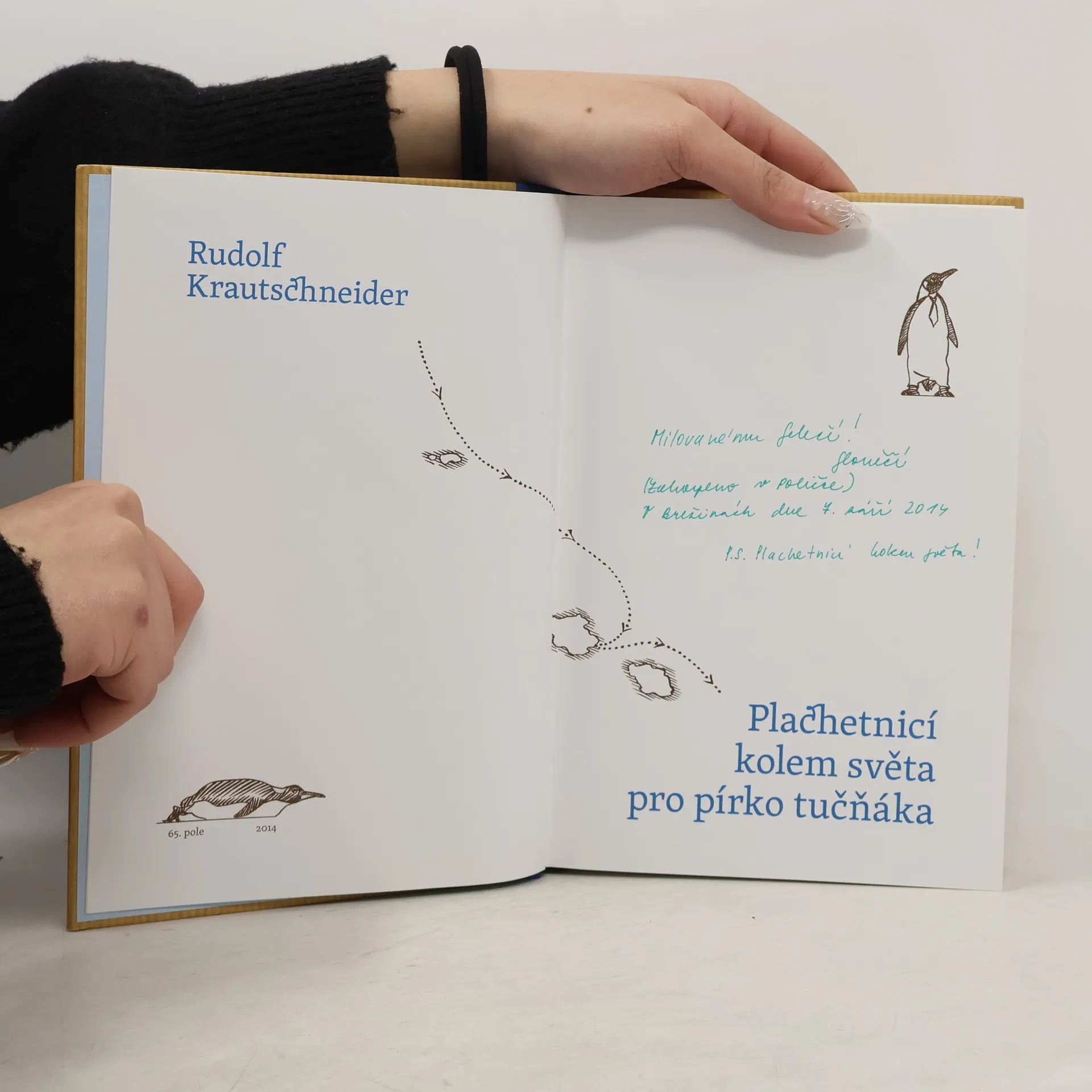 Jeden z největších českých mořeplavců Ruda Krautschneider ve své poutavé knize popisuje plavbu kolem světa v antarktickém pásmu, přistání na pustých ostrovech, ale i barvitost Austrálie, Afriky, Jižní Ameriky a polárních stanic. Tuto tři a půl roku dlouhou plavbu absolvovali tři Češi na jachtě Polárka. „Právě bláznovství nás vrací k normálu.“ Tak zní jedna z originálních myšlenek, kterou si autor poznamenal během několikadenní bouře v Indickém oceánu. Z jeho vyprávění čiší zkušenost a moudrost starého barda, který zbrázdil moře celého světa. Není pro něj podstatné, kam dopluje a čeho dosáhne, jde za hlubším prožitkem, zachytává okamžiky, po kterých každý člověk prahne. Píše o moři, které se mu stalo skutečným domovem, o moři, které člověka očišťuje a zbavuje pýchy. Nejúspěšnější kniha mořeplavecké legendy Plachetnicí kolem světa pro pírko tučňáka vychází v krásné grafické podobě s plátěnou vazbou. Její součástí je peříčko tučňáka, které autor přivezl z Antarktidy.
