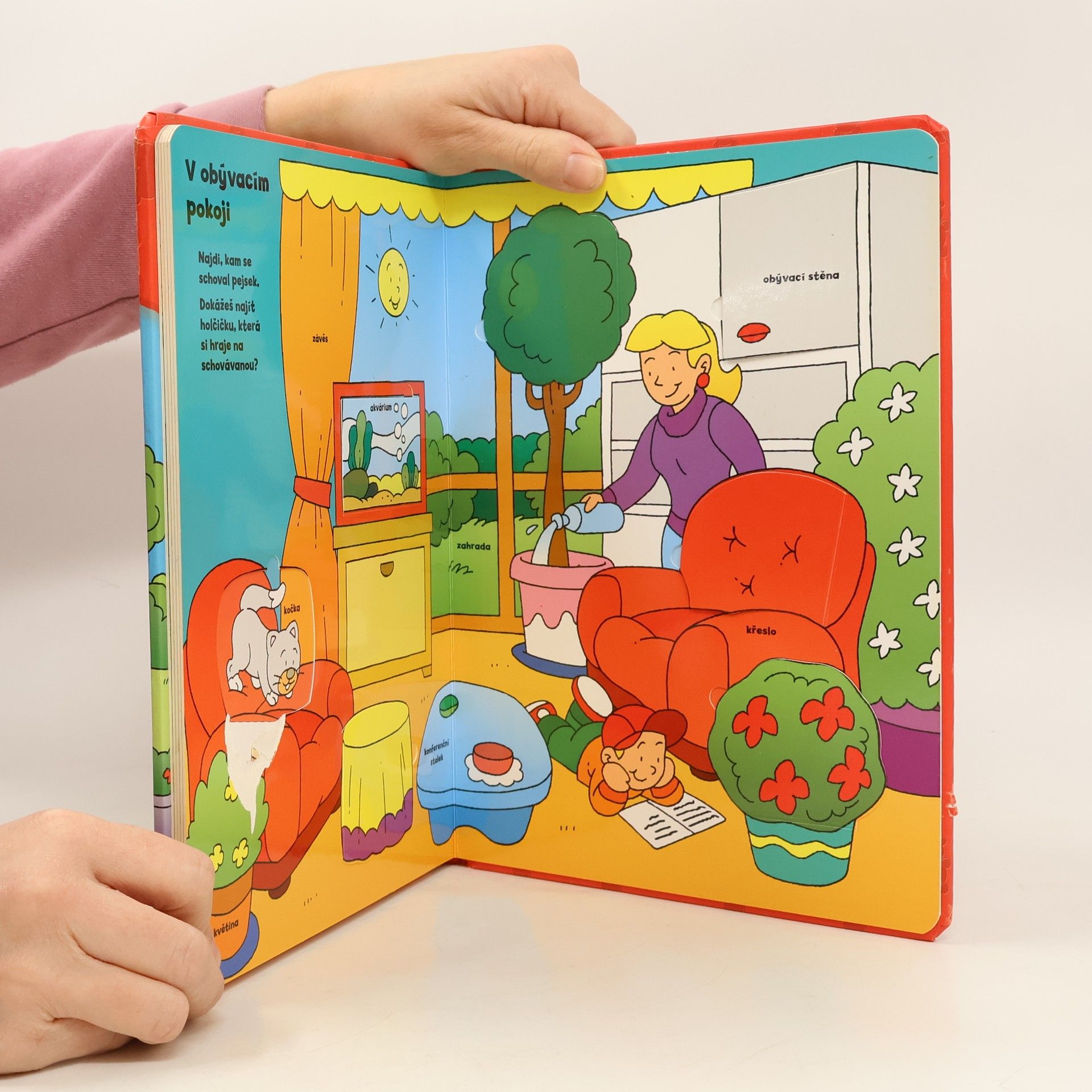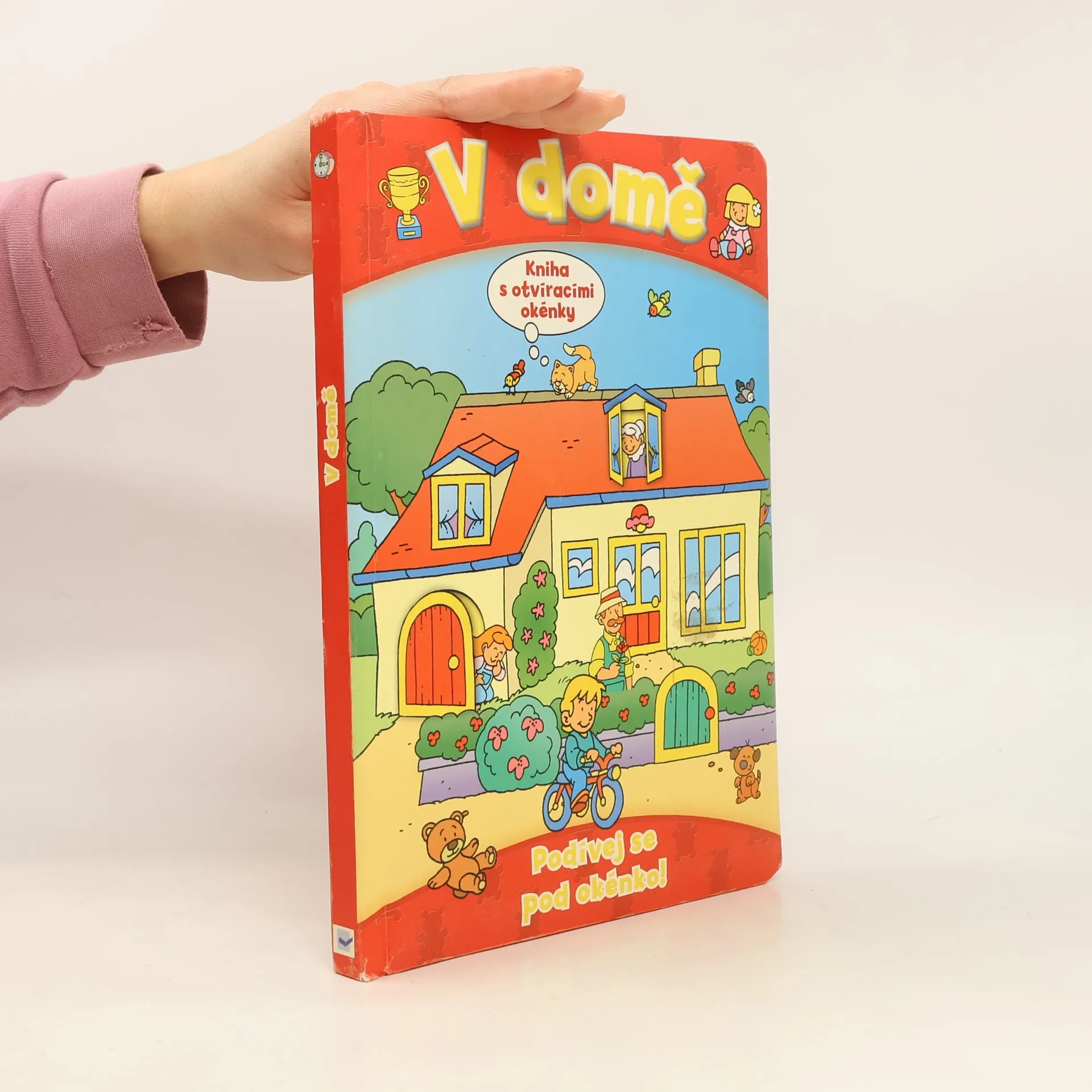 Vítej v našem domě. Najdi, kde je v koupelně schovaný fén! Objevíš, co je zapečeno v dortu? Najdi, kde se schoval pejsek! S tímto leporelem se nejmenší děti hravou formou naučí první slůvka z domácího prostředí. Otevřete okénka a odhalte všechna překvapení!