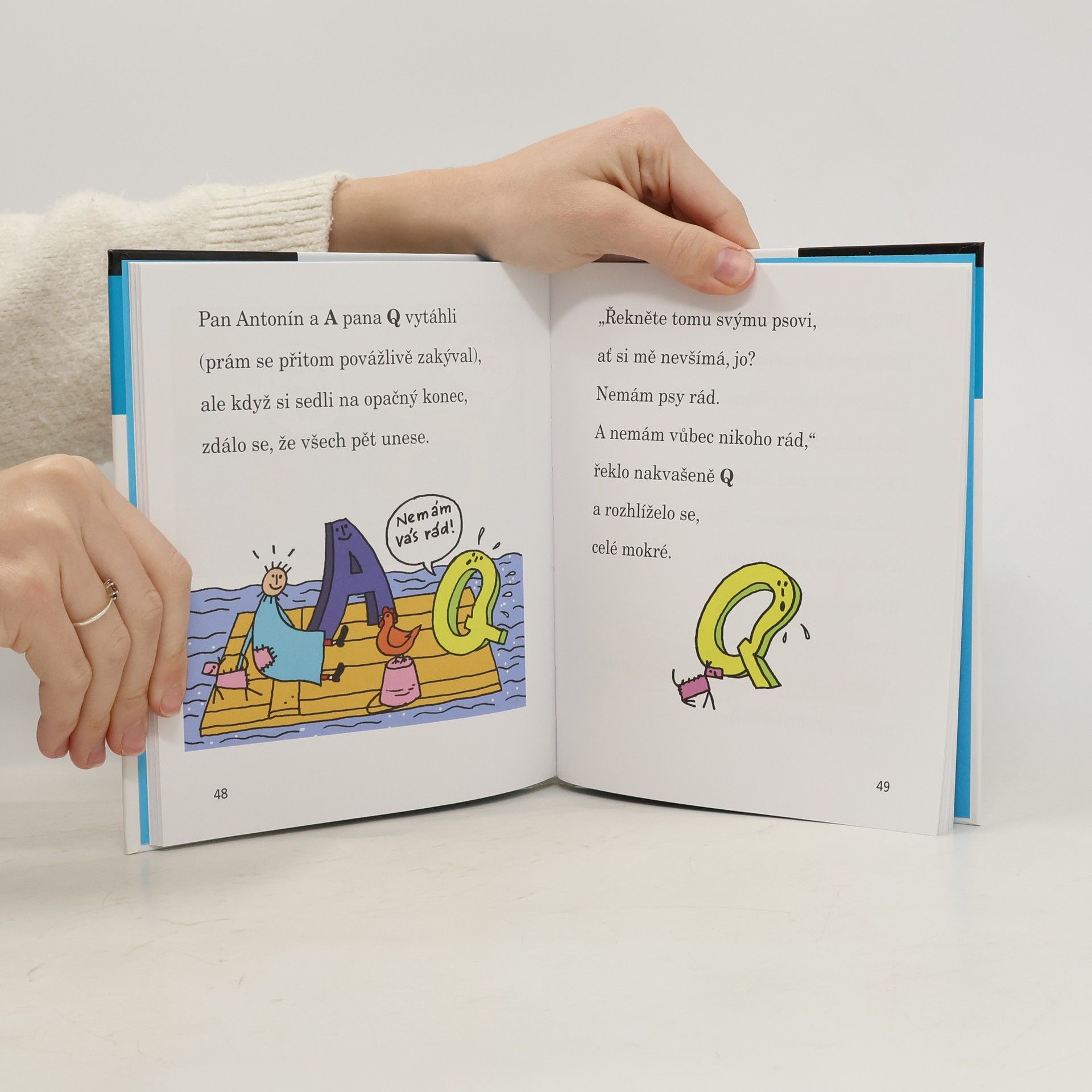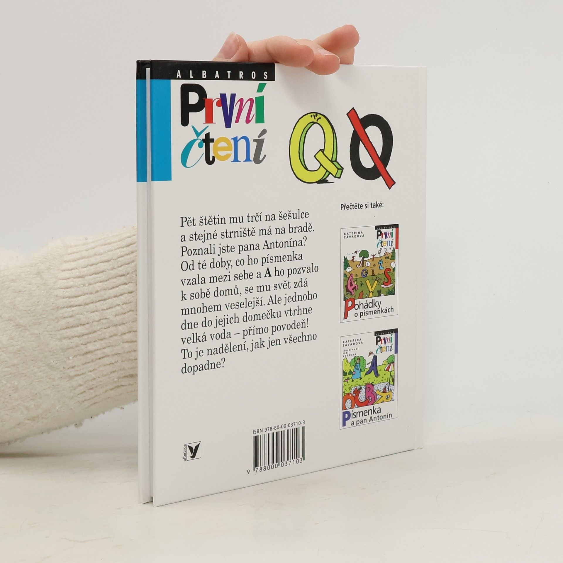 Pět štětin mu trčí na šešulce a stejné strniště má na bradě. Poznali jste pana Antonína? Od té doby, co ho písmenka vzala mezi sebe a A ho pozvalo k sobě domů, se mu svět zdá mnohem veselejší. Ale jednoho dne do jejich domečku vtrhne velká voda – přímo povodeň! A navíc si pan Q pořád stěžuje, že se písmenkům nehodí do žádného slova. To je nadělení, jak jen tohle všechno dopadne? Volné pokračování knížek Pohádky o písmenkách a Písmenka a pan Antonín.