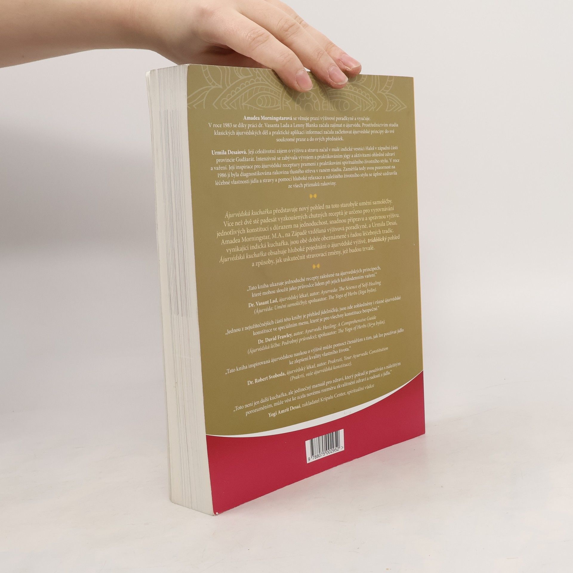 Ájurvédská kuchařka představuje nový pohled na toto starobylé umění samoléčby. Více než dvě stě padesát vyzkoušených chutných receptů je určeno pro vyrovnávání jednotlivých konstitucí s důrazem na jednoduchost, snadnou přípravu a správnou výživu. Amadea Morningstarová, na Západě vzdělaná a mezinárodně uznávaná výživová poradkyně a Urmila Desaiová, vynikající indická kuchařka, jsou obě dobře obeznámené s řadou léčebných tradic. Ájurvédská kuchařka obsahuje hluboké pojednání o ájurvédské výživě, tridóšický pohled a způsoby, jak uskutečnit stravovací změny, jež budou trvalé.