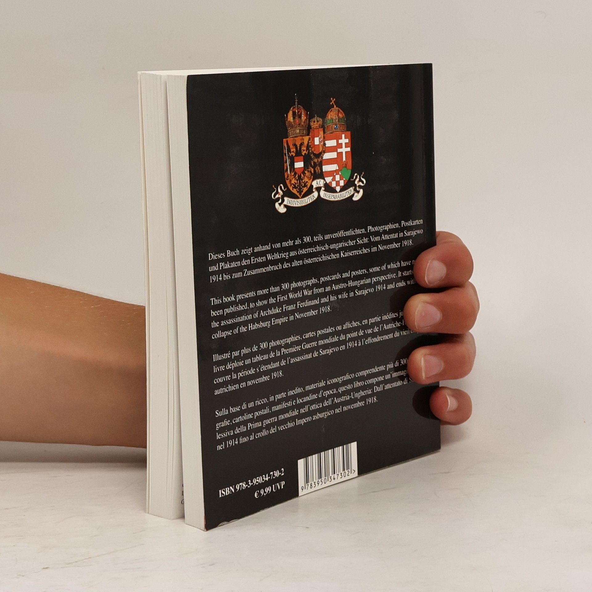 This book presents more than 300 photographs, postcards, and posters, some of which have never been published, to show the First World War from the Austro-Hungarian perspective. It starts with the assassination of Archduke Franz Ferdinand and his wife in Sarajevo in 1914 and ends with the collapse of the Habsburg Empire in November 1918.