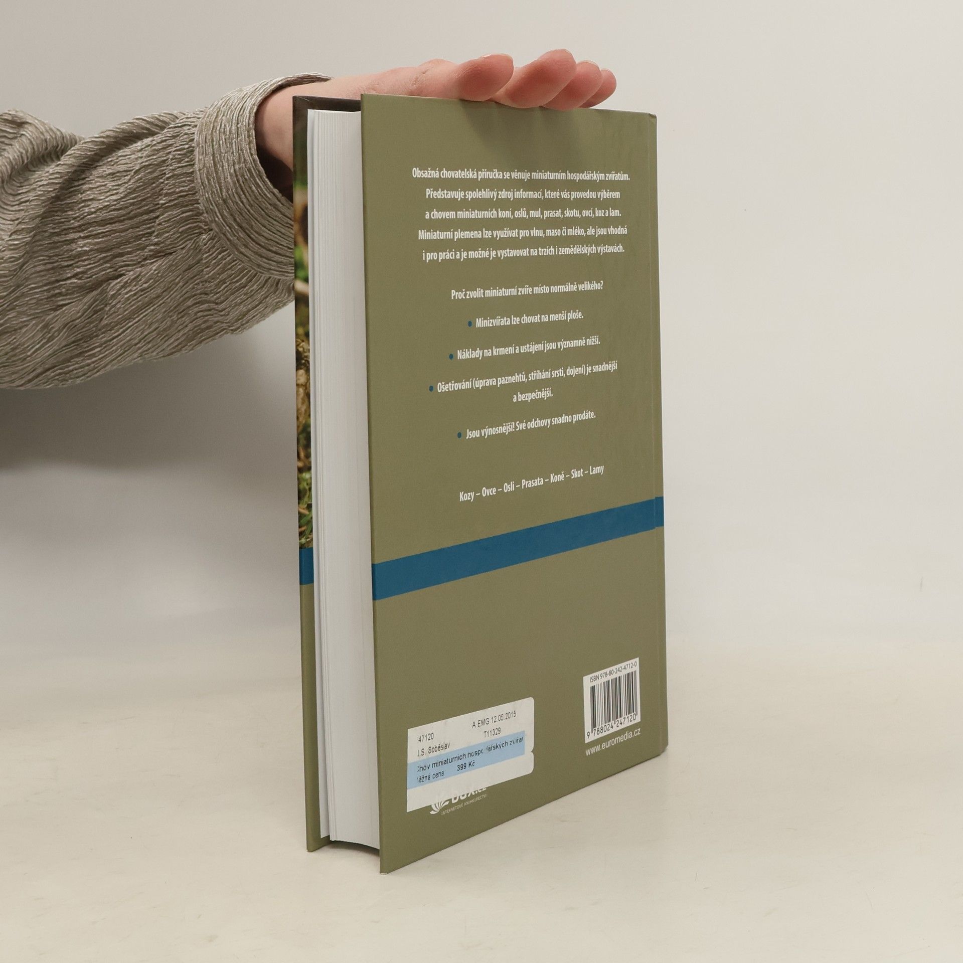 Praktická černobílá publikace nabízí podrobné informace o všem, co je potřeba při chovu vědět: výběr zvířete, ochrana před predátory, ustájení, krmení, označování, zdraví, mléko, jednotlivé druhy (skot, koně, kozy, lamy, prasata, ovce). Chov miniaturních zvířat je celosvětový trend.