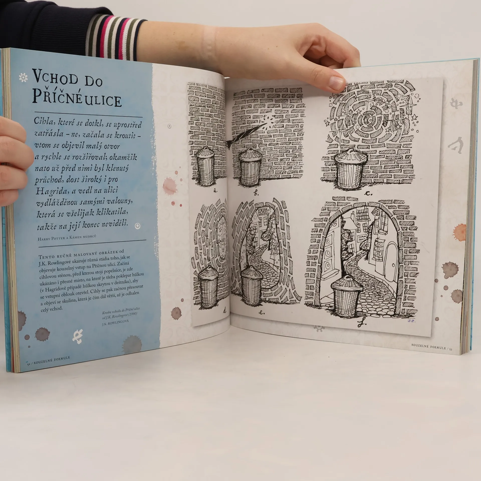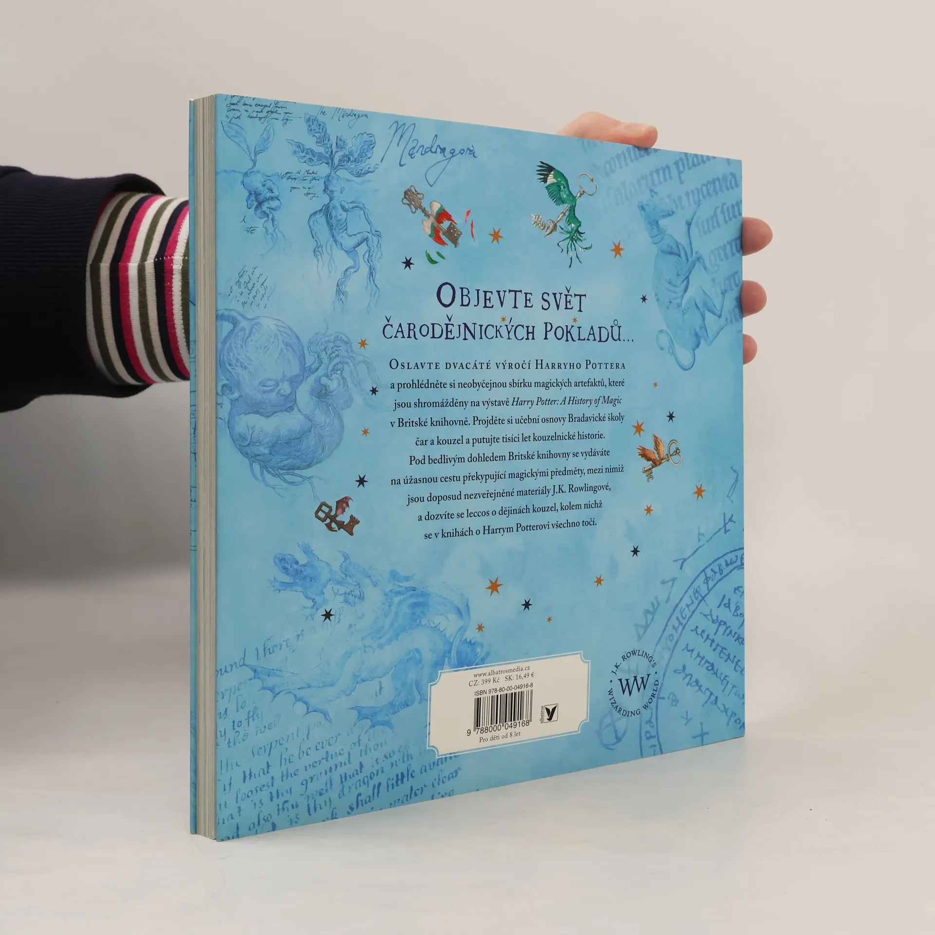 OBJEVTE SVĚT ČARODĚJNICKÝCH POKLADŮ... OSLAVTE DVACÁTÉ VÝROČÍ HARRYHO POTTERA a prohlédněte si neobyčejnou sbírku magických artefaktů, které jsou shromážděny na výstavě Harry Potter: A History of Magic v Britské knihovně. Projděte si učební osnovy Bradavické školy čar a kouzel a putujte ticíci let kouzelnické historie. Pod bedlivým dohledem Britské knihovny se vydáváte na úžasnou cestu překypující magickými předměty, mezi nimiž jsou doposud nezveřejněné materiály J.K. Rowlingové, a dozvíte se leccos o dějinách kouzel, kolem nichž se v knihách o Harrym Potterovi všechno točí. U PŘÍLEŽITOSTI DVACÁTÉHO VÝROČÍ původního vydání knihy Harry Potter a Kámen mudrců bereme čtenáře na úchvatnou cestu bradavickými školními osnovami od péče o kouzelné tvory a bylinkářství přes obranu proti černé magii a astronomii až po přeměňování. Za všemi těmito obory jsou tisíce let historie. Na stránkách této knihy objevíte pozoruhodné artefakty ze sbírek Britské knihovny, nikdy nepublikované skici a faksimile rukopisů J.K. Rowlingové a nádherné ilustrace Jima Kaye. Dozvíte se, odkud pochází Kámen mudrců a co skrývají strašliví draci a obtížní trollové. Sami si připravíte lektvar, prohlédnete si skutečné kouzelnické hůlky a zjistíte, proč doopravdy mandragory tak ječí. A pokocháte se stránkami z da Vinciho zápisníku nebo z nejstaršího atlasu noční oblohy.