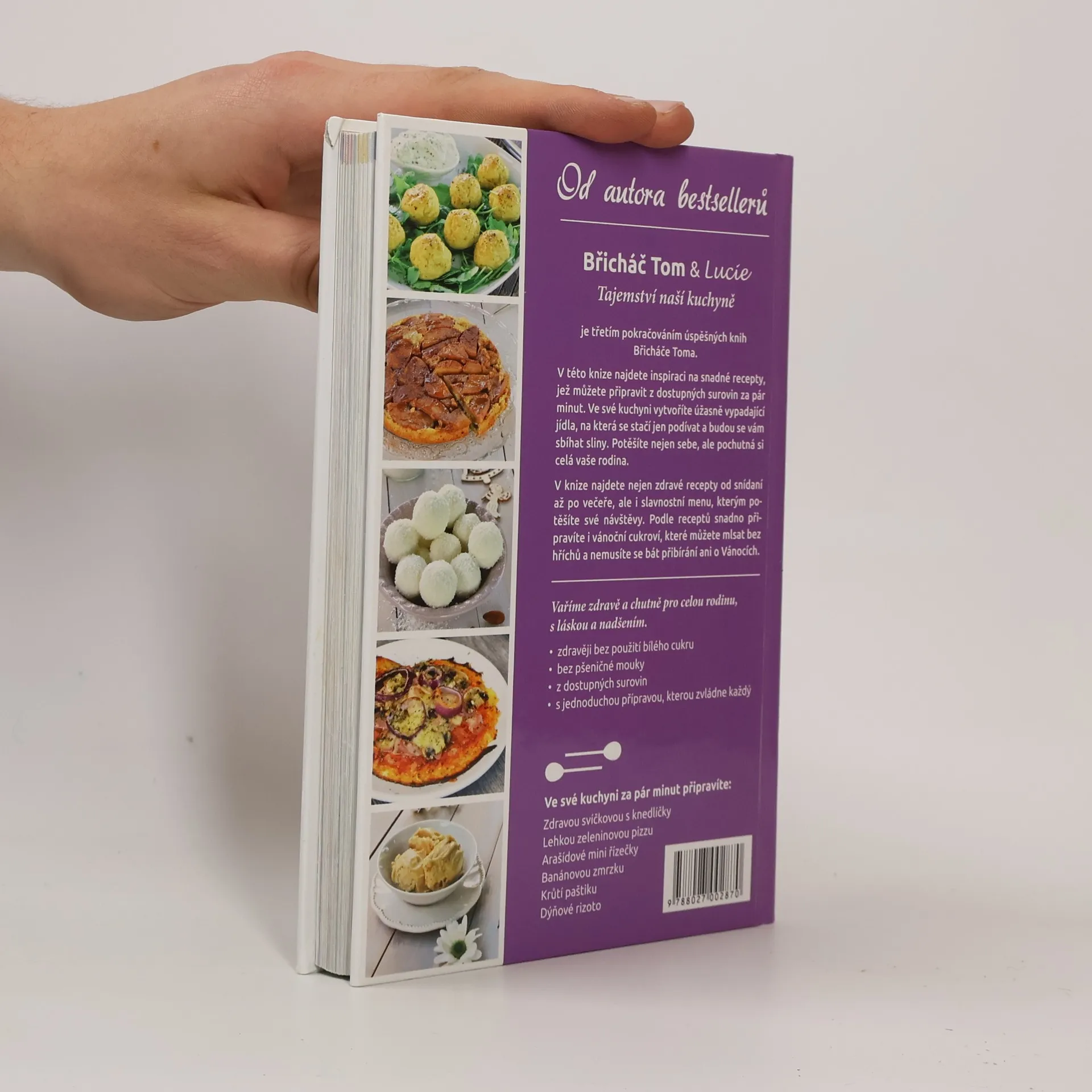 Je třetím pokračováním úspěšných knih Břicháče Toma. V této knize najdete inspiraci na snadné recepty, jež můžete připravit z dostupných surovin za pár minut. Ve své kuchyni vytvoříte úžasně vypadající jídla, na která se stačí jen podívat a budou se vám sbíhat sliny. Potěšíte nejen sebe, ale pochutná si celá vaše rodina. V knize najdete nejen zdravé recepty od snídaní až po večeře, ale i slavnostní menu, kterým potěšíte své návštěvy. Podle receptů snadno připravíte i vánoční cukroví, které můžete mlsat bez hříchů a nemusíte se bát přibírání ani o Vánocích. Vaříme zdravě a chutně pro celou rodinu, s láskou a nadšením. - zdravěji bez použití bílého cukru - bez pšeničné mouky - z dostupných surovin - s jednoduchou přípravou, kterou zvládne každý Ve své kuchyni za pár minut připravíte: - Zdravou svíčkovou s knedlíčky - Lehkou zeleninovou pizzu - Arašídové mini řízečky - Banánovou zmrzku - Krůtí paštiku - Dýňové rizoto