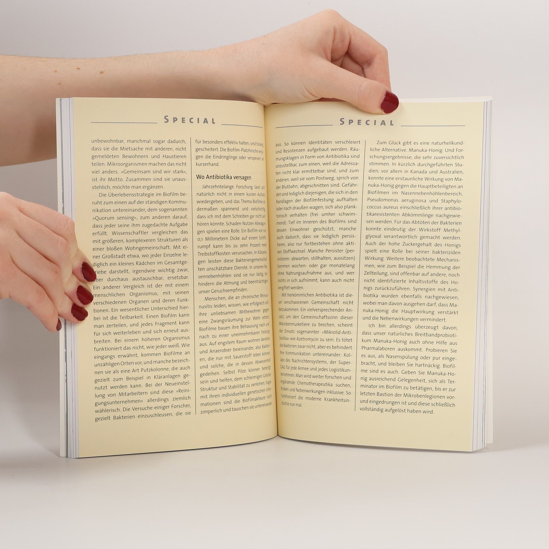 Manuka-Honig ist ein Naturprodukt mit außergewöhnlicher Heilkraft, das sich im klinischen Einsatz und unter schwierigsten Bedingungen bewährt hat. Manuka-Honig ist ein antimikrobielles Breitbandprobiotikum und wirkt gegen verschiedenste Keime, ohne dass es zu einer Resistenzbildung kommt. Er verfügt über enorme entzündungshemmende sowie heilungsfördernde Eigenschaften. Manuka-Honig erwies sich häufig wirkungsvoller als Antibiotika. Manuka-Honig in aller Munde und in aller Wunde. Anwendungen von A bis Z, mit Erfahrungsberichten und Hintergrundinformationen.