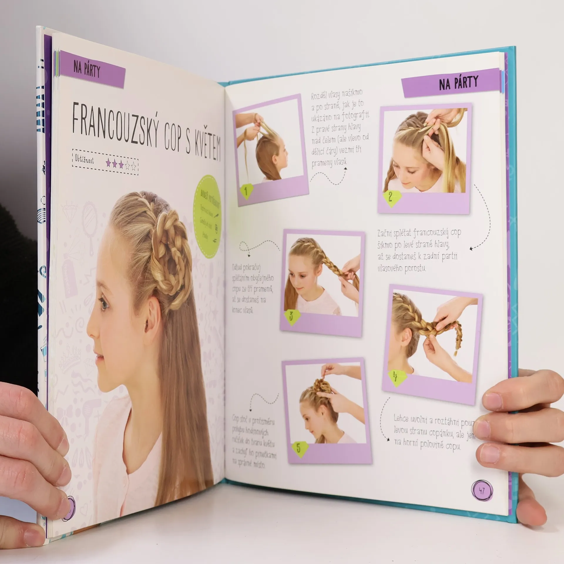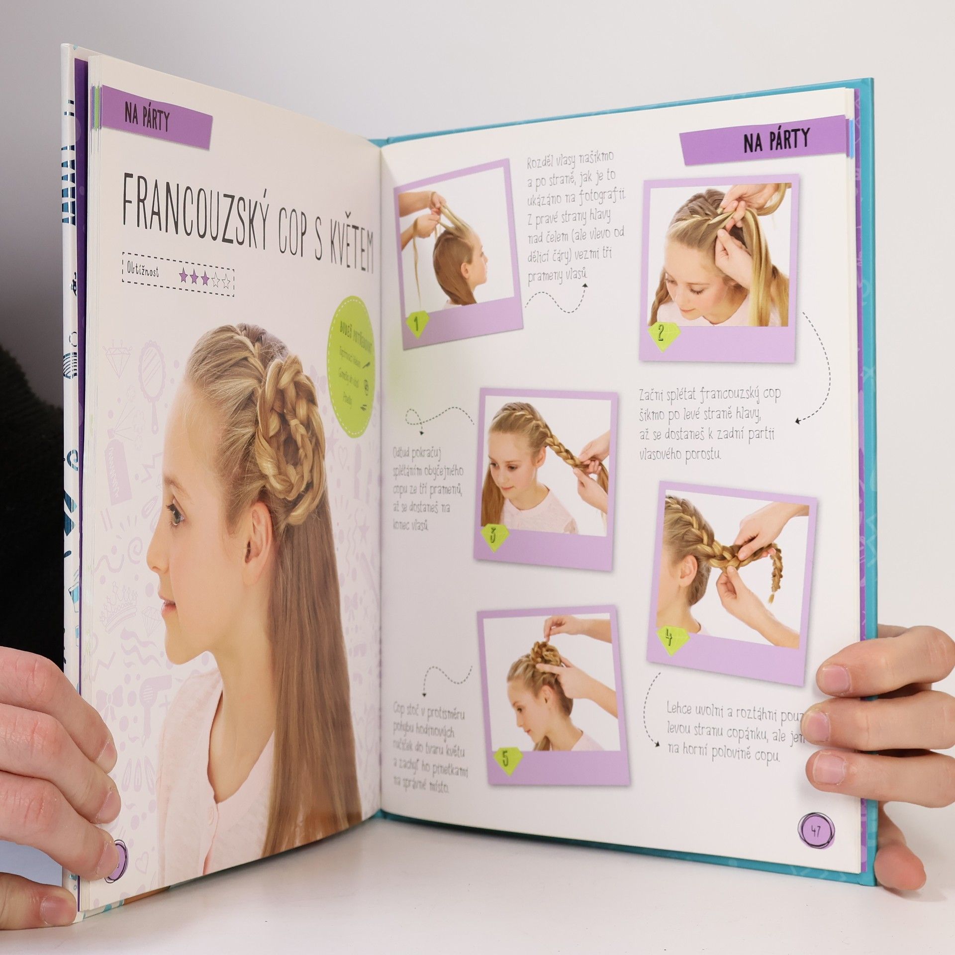 Probudila ses s rozčepýřenými vlasy a nemáš vůbec představu, co se svým účesem dnes provedeš? Chtěla bys ve škole zaujmout nějakým originálním, a přitom elegantním copem? Čeká tě o víkendu večírek, na který by se hodilo mít na hlavě něco odvážnějšího? Pak je tato knížka přesně pro tebe! Najdeš zde inspiraci na účesy pro všechny možné příležitosti. Pokud nemáš se splétáním složitějších copánků dosud žádné zkušenosti, nemusíš se bát - kniha ti ukáže vše krok za krokem, postupovat budeš od základních, jednoduchých účesů až po šik a trendy copy a ohony. Každý účes je opatřen přehlednou tabulkou se všemi pomůckami, které budeš právě potřebovat. Už nikdy zacuchané kudrliny a promarněné minuty před zrcadlem. V této knížce najdeš spoustu nápadů, jak učesat sebe i své kamarádky.