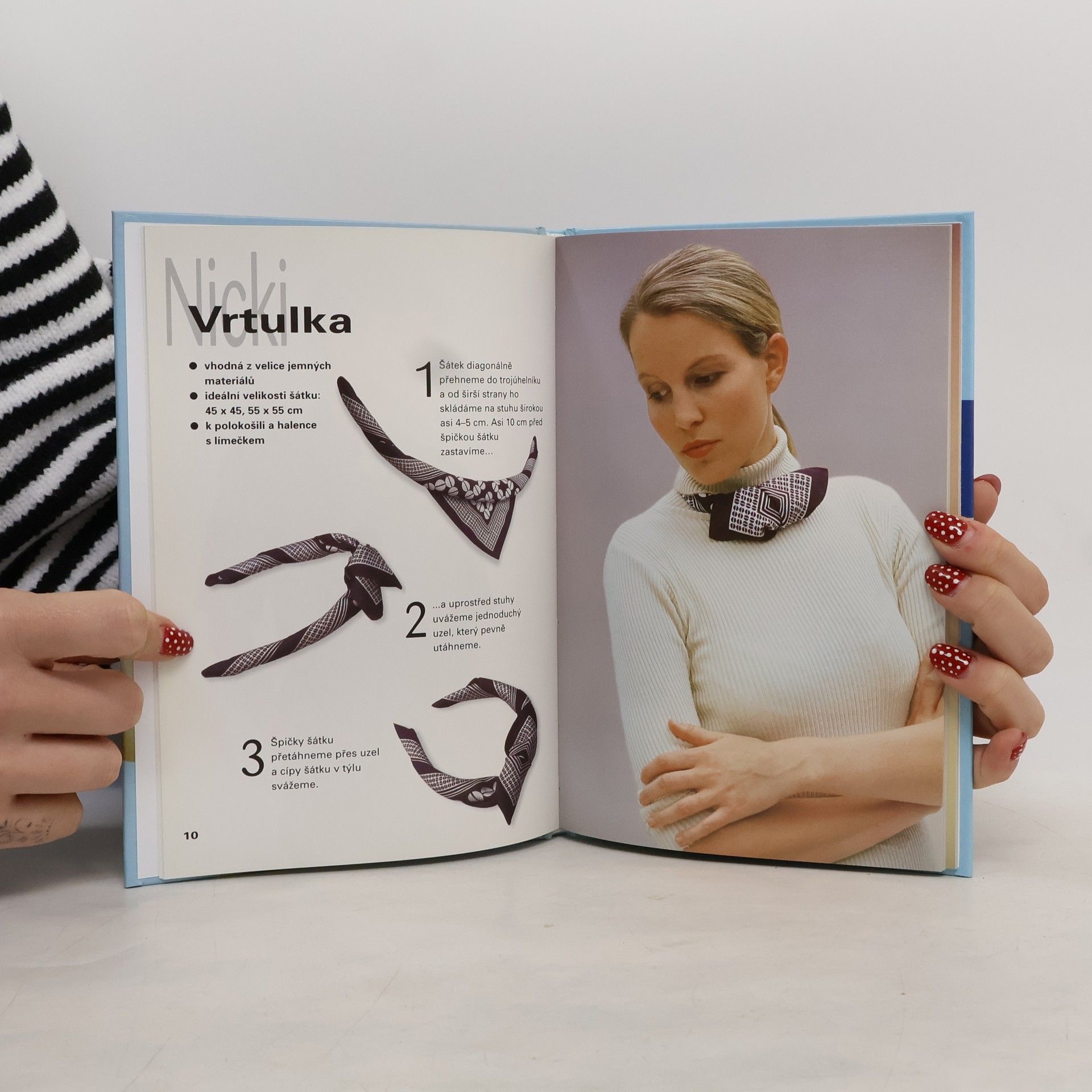 21 technik vázání Všední oblečení můžete změnit nedbale uvázaným šátkem nebo nápaditou kreací z šály. Jde o malý trik, umný uzel, správnou kličku, trochu cviku a zručnosti. Stačí zvolit kvalitní látku, správnou barvu, velikost a vybrat si techniku vázání, která podtrhne charakter osobitého stylu a zdůrazní vaši momentální náladu. V knize najdete např. malé, roztomilé šátečky Nicki, velké čtvercové šátky, dlouhé šály s moderním designem, zajímavé kombinace do zaměstnání a také jednoduché uzly pro volný čas. Přeložila Alena Bezděková. Váz., 48 stran, 15 x 21,5 cm... celý text