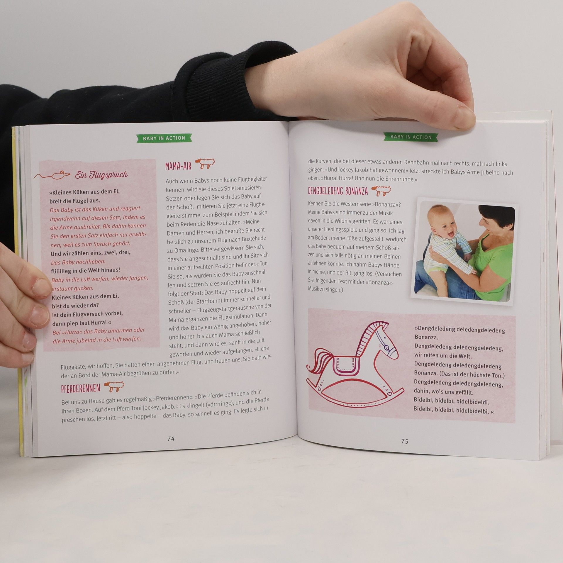 Die ersten gemeinsamen Spiele und Reime sind für Babys und Mütter bezaubernde Momente, die ein Leben lang in Erinnerung bleiben. Doch vielen Müttern fehlen Ideen und Anleitung für Babyspiele, die Spaß machen. Dieses liebevoll gestaltete Buch bietet viele kreative Anregungen - für jede Entwicklungsphase des Babys bis zum 2. Lebensjahr. Freuen Sie sich auf eine Schatzkiste voller Spielideen, die man nicht kaufen muss. Sie werden mit Dingen aus dem Haus einfach selbst gebastelt und gestaltet. Erleben Sie eine zärtliche und fröhliche Zeit mit Spielen, Liedern und Reimen, zu denen Sie nichts brauchen außer Ihre Hände und ihre Stimmen.