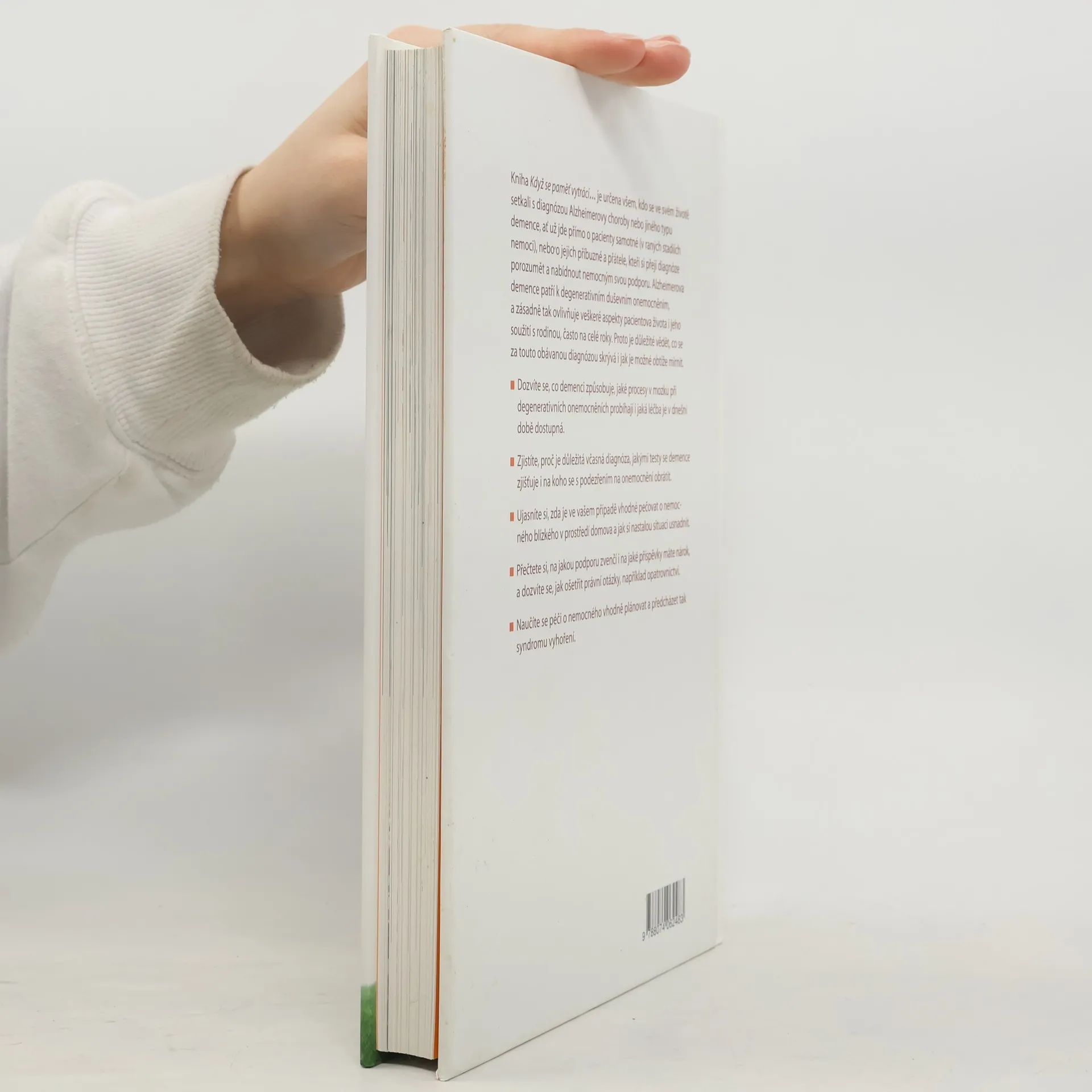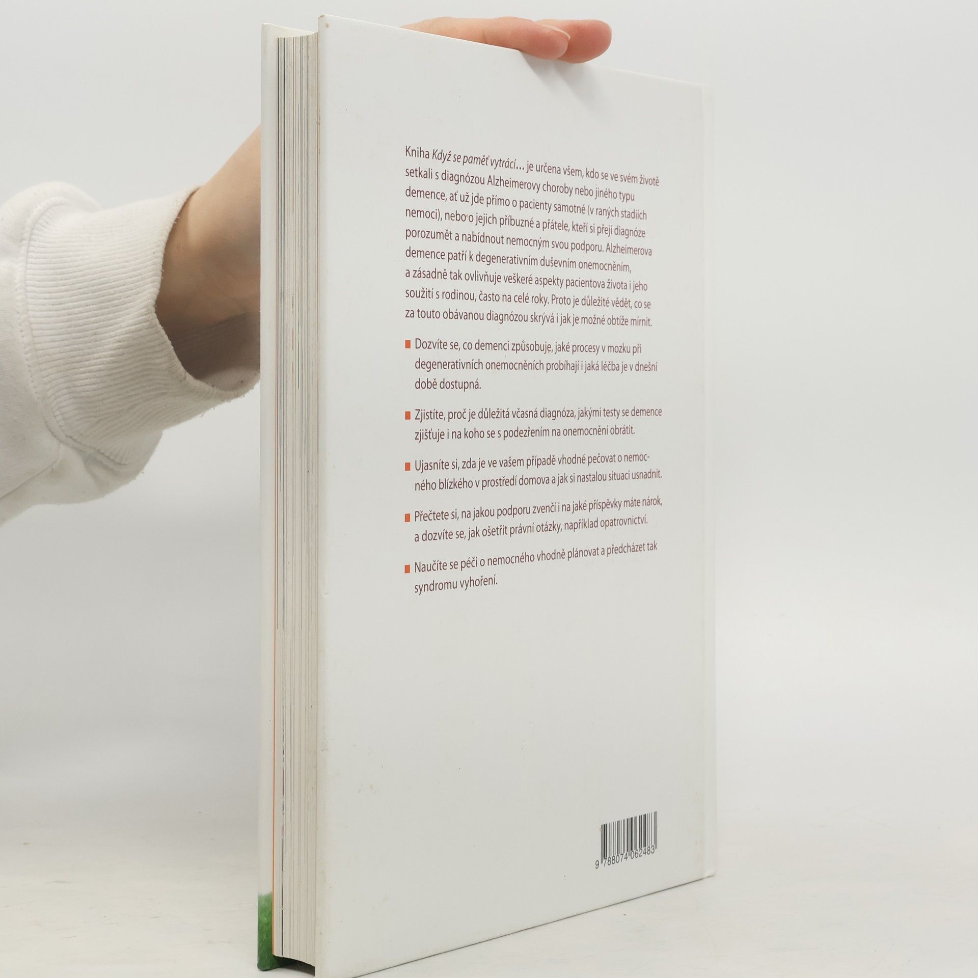 Převratná kniha KDYŽ SE PAMĚŤ VYTRÁCÍ je určena všem, kdo se ve svém životě setkali nebo setkávají s diagnózou Alzheimerovy choroby či jiného typu demence, ať už jde přímo o pacienty samotné, nebo o jejich příbuzné a přátele. Cenným zdrojem informací bude kniha hlavně pro osoby, které se rozhodly pečovat o své blízké postižené demencí v domácím prostředí. Dozvíte se, co se za obávanou diagnózou skrývá i jak je možné obtíže mírnit a jaké úpravy v bytě či domě provést s ohledem na pohodlí i bezpečnost nemocného. Přečtete si, kam se obrátit, nevíte-li si s pacientem rady, a naučíte se věnovat pozornost i vlastnímu tělesnému zdraví a psychice a předcházet tak syndromu vyhoření. Významná část knihy se věnuje problematice demence z pohledu českého právního řádu a přiblíží vám institut opatrovnictví, ale i novinky, které do této oblasti vnáší nový občanský zákoník. Dozvíte se také, jak správně napsat plnou moc i jak zaznamenat přání pacienta v době, kdy je ještě schopen komunikovat.