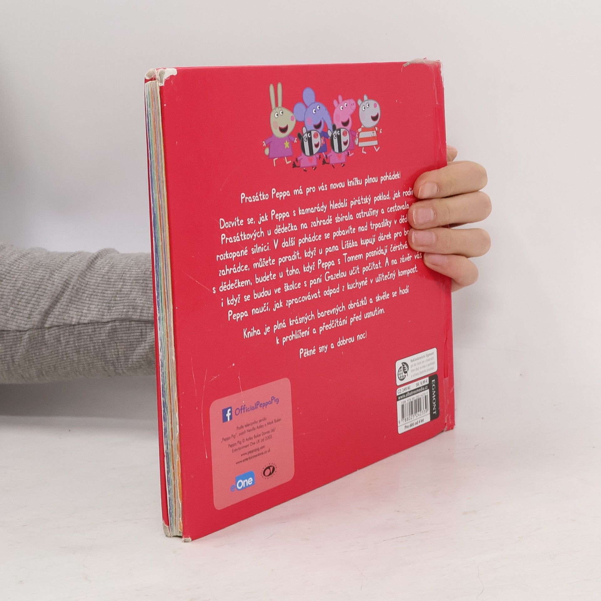 V nové knížce plné pohádek si přečtete, jak Peppa s kamarády hledala pirátský poklad nebo se ve školce učila počítat, o tom, jak s rodinou sbírali ostružiny, nakupovali u pana Lišáka, cestovali po rozkopané silnici, stavěli studnu přání, sbírali čerstvá vajíčka a vyráběli kompost. Knížka s krásnými obrázky se skvěle hodí k předčítání přes usnutím!