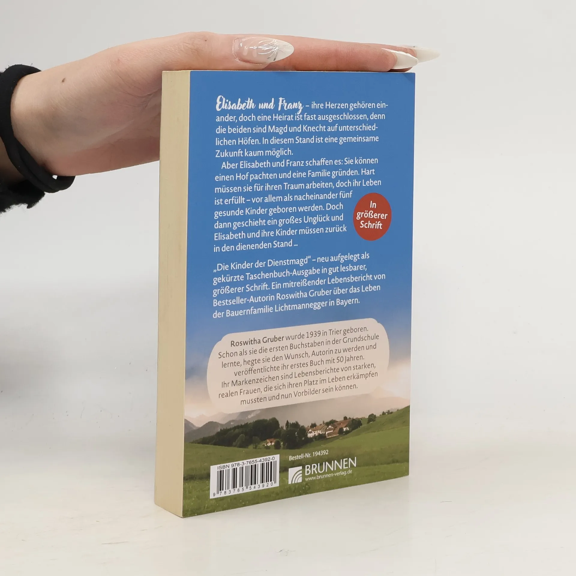 Elisabeth und Franz – ihre Herzen gehören einander, doch eine Heirat ist fast ausgeschlossen, denn die beiden sind Magd und Knecht auf unterschiedlichen Höfen. In diesem Stand ist eine gemeinsame Zukunft fast unmöglich. Doch Elisabeth und Franz schaffen es: Sie können einen Hof pachten und eine Familie gründen. Hart müssen sie für ihren Traum arbeiten, doch ihr Leben ist erfüllt – vor allem als nacheinander fünf gesunde Kinder geboren werden. Doch dann geschieht ein großes Unglück und Elisabeth und ihre Kinder müssen zurück in den dienenden Stand … „Die Kinder der Dienstmagd” – neu aufgelegt als gekürzte Taschenbuch-Ausgabe in gut lesbarer, größerer Schrift. Ein mitreißender Lebensbericht von Bestseller-Autorin Roswitha Gruber über das Leben der Bauernfamilie Lichtmannegger in Bayern. In größerer Schrift...