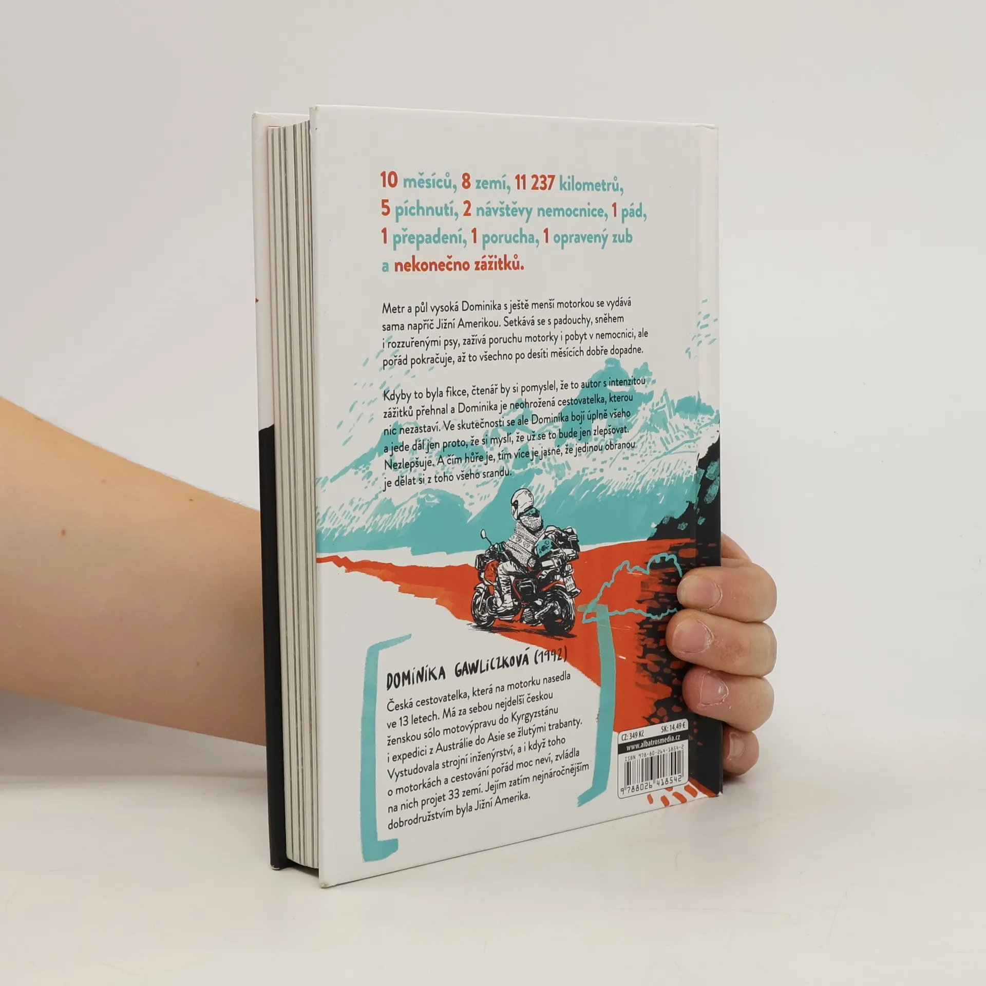 Velká cesta malé motorkářky. Metr a půl vysoká Dominika s ještě menší motorkou se vydává sama napříč Jižní Amerikou. Setkává se s padouchy i vzteklými psy, s poruchou i nemocnicí. Být to fikce, čtenář by si řekl, že to autor se zážitky přehnal a Dominika je neohrožená cestovatelka, kterou nic nezastaví. Ona se však bojí úplně všeho a jede dál jen proto, že si myslí, že se to zlepší. Nezlepší. A čím hůř je, tím víc je jasné, že jedinou obranou je dělat si z toho všeho srandu.