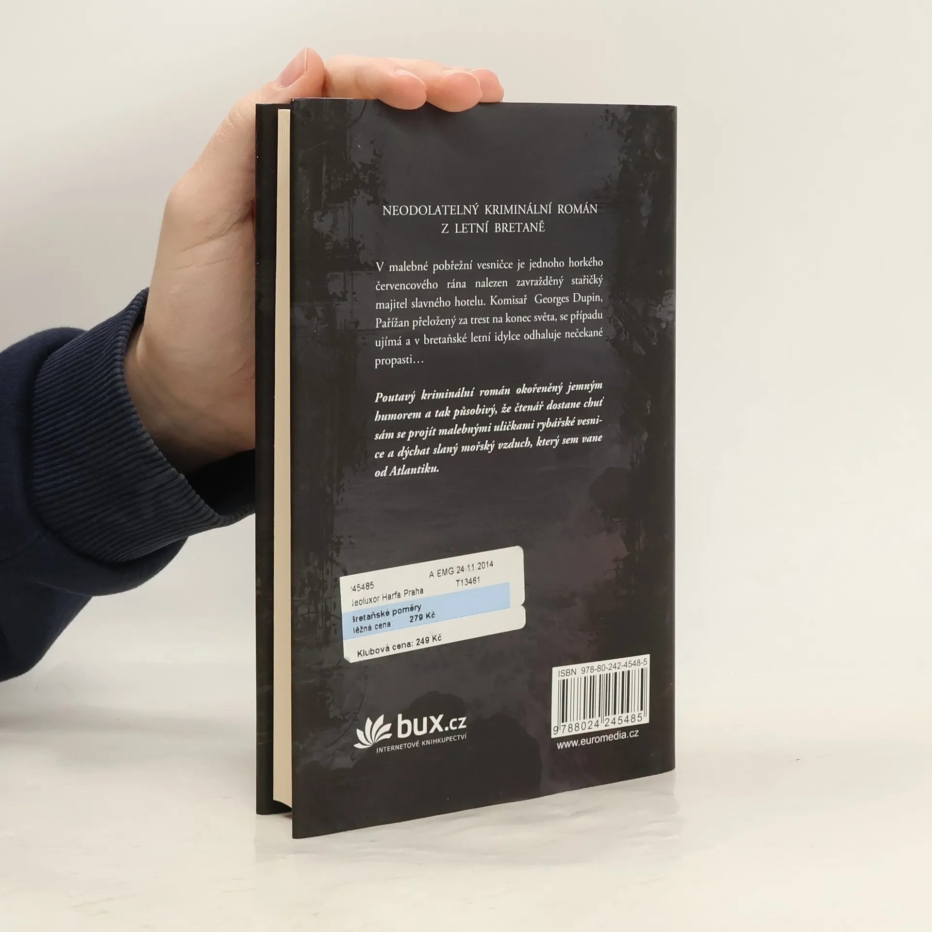 První případ pro komisaře Dupina, milovníka tučňáků a kofeinu, rodilého Pařížana za trest přeloženého do Bretaně – na konec světa. V malebné pobřežní vesničce je jednoho horkého červencového rána nalezen zavražděný stařičký majitel slavného hotelu. Komisař Georges Dupin se v bretaňské letní idylce záhy dostává na stopu podivuhodného tajemství..