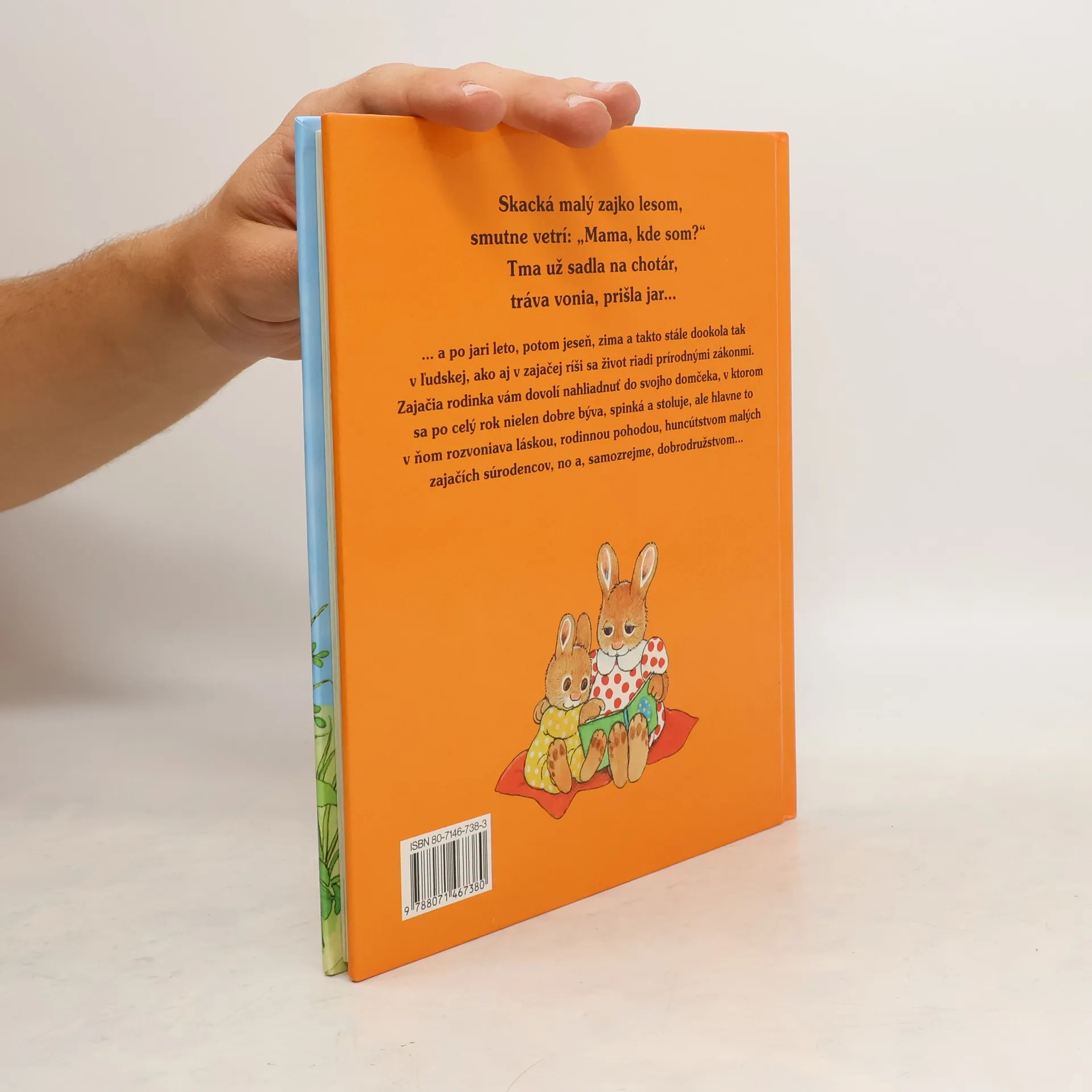 Skacká malý zajko lesom, smutne vetrí: "Mama, kde som?" Tma už sadla na chotár, tráva vonia, prišla jar... ...a po jari leto, potom jeseň, zima a takto stále dookola tak v ľudskej, ako aj v zajačej ríši sa život riadi prírodnými zákonmi. Zajačia rodinka vám dovolí nahliadnuť do svojho domčeka, v ktorom sa po celý rok nielen dobre býva, spinká a stoluje, ale hlavne to v ňom rozvoniava láskou, rodinnou pohodou, huncútstvom malých zajačích súrodencov, no a, samozrejme, dobrodružstvom...