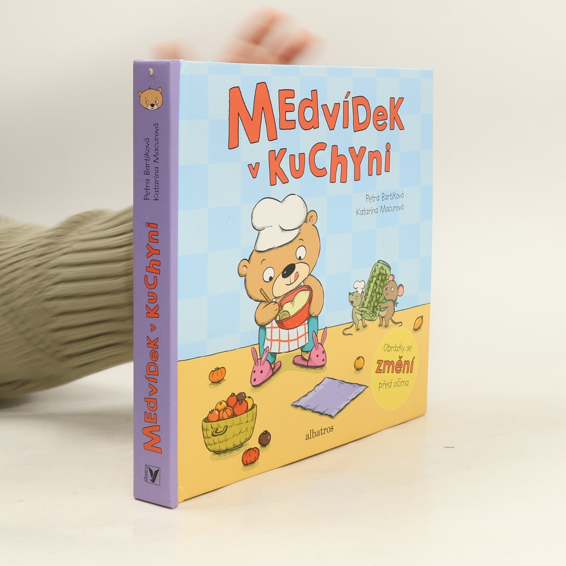 Medvídkovi při vaření pomáhají dvě myšky. Jsou to ale náramné poplety. Veselé leporelo s pohyblivými obrázky a roztomilými ilustracemi.