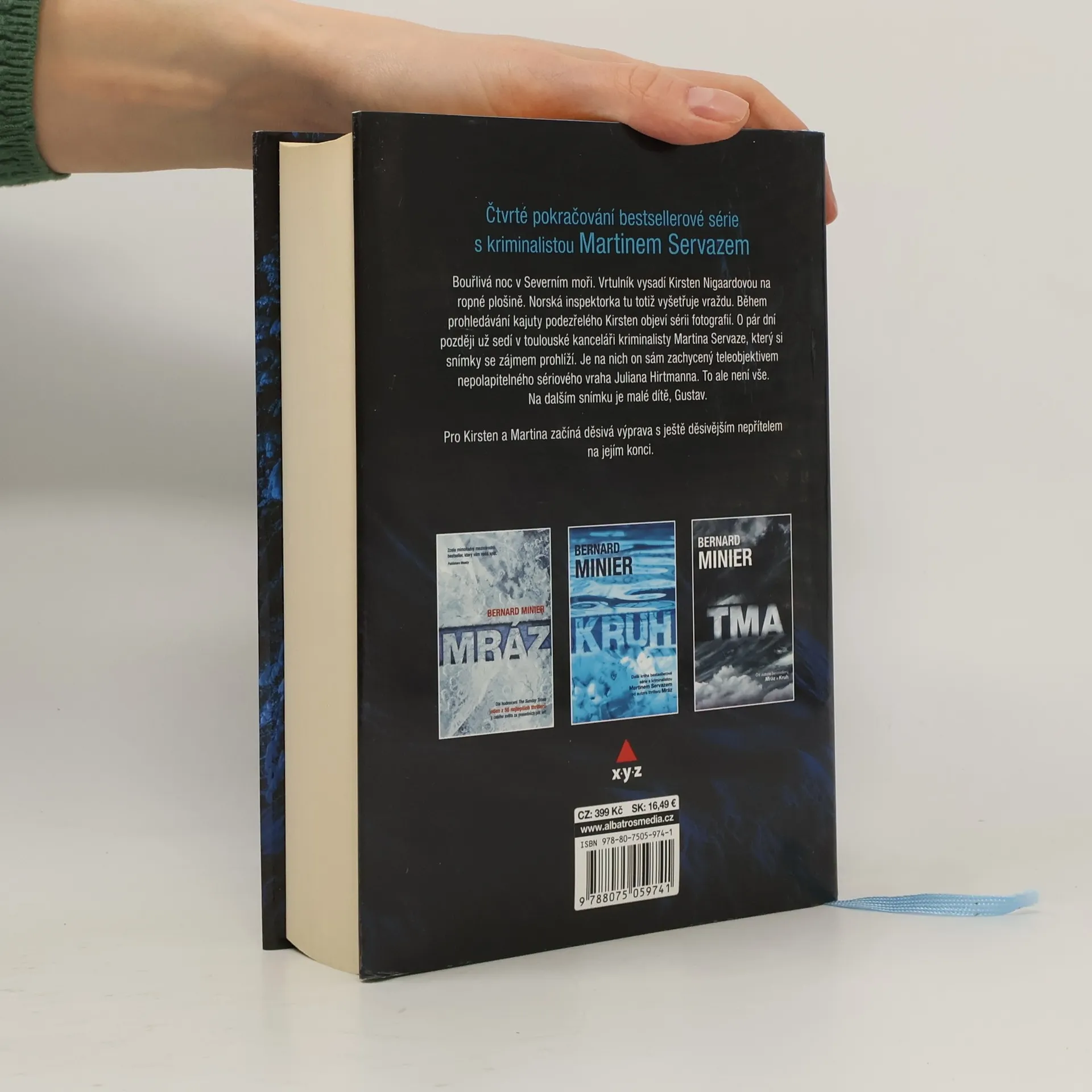 Čtvrté pokračování bestsellerové série s kriminalistou Martinem Servazem. Během vyšetřování vraždy na ropné plošině narazí norská inspektorka Kirsten Nigaardová na sérii fotografií. O pár dní později sedí v toulouské kanceláři kriminalisty Martina Servaze, který si snímky se zájmem prohlíží. Je na nich on sám zachycený objektivem nepolapitelného sériového vraha Juliana Hirtmanna. To ale není vše. Na dalším snímku je malé dítě, Gustav. Pro Kirsten a Martina začíná děsivá výprava s ještě děsivějším nepřítelem na jejím konci.