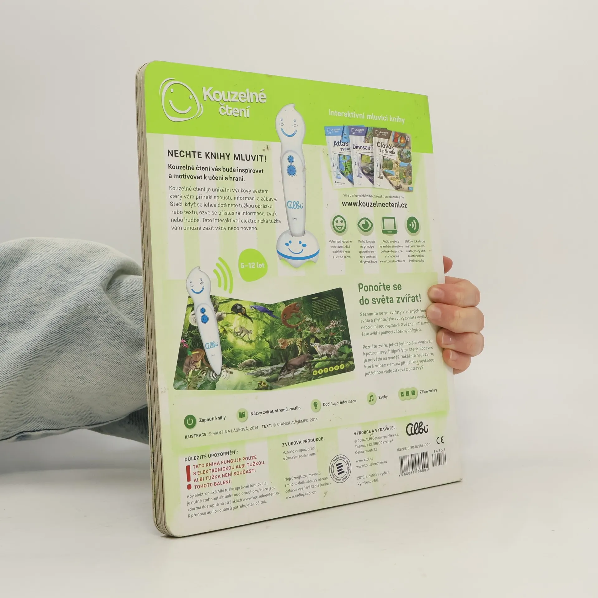 Ponořte se do světa zvířat! Seznamte se se zvířaty ze všech koutů světa a zjistěte, jaké zvuky vydávají, čím se živí nebo čím jsou jedinečná. Kniha vás tématicky provede osmi různými prostředími z naší planety, jako je les, savana, poušť, moře a další. Na každé straně se dozvíte, jaká zvířata v daném prostředí žijí, jak se jmenují, jaké zvuky vydávají a čím jsou zajímavá. Své znalosti si pak můžete ověřit pomocí zábavných kvízů, které jsou vždy rozděleny do tří kategorií: najdi zvíře podle názvu, najdi zvíře podle zvuku, najdi zvíře podle zajímavosti. Kniha je namluvena známým českým hercem Otakarem Brouskem ml. Kniha obsahuje přes 900 zvuků a textů. Kniha vznikla ve spolupráci s Českým rozhlasem.