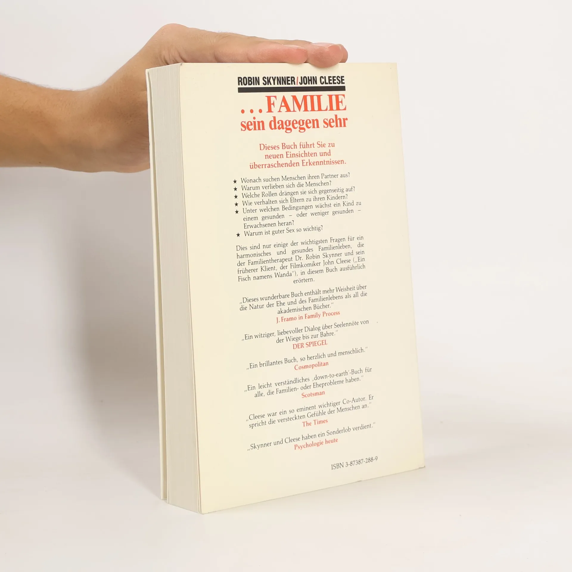 Wonach suchen Menschen ihren Partner aus? Warum verlieben sich Menschen? Welche Rollen drängen sie sich gegenseitig auf? Wie verhalten sich Eltern zu ihren Kindern? Unter welchen Bedingungen wächst ein Kind zu einem gesunden oder weniger gesunden Erwachsenen heran? Warum ist guter Sex so wichtig? Dies sind nur einige der wichtigsten Fragen für ein harmonisches und gesundes Familienleben, die der Familientherapeut Robin Skynner und sein früherer Klient, der Filmkomiker John Cleese, in diesem Buch ausführlich erörtern. Die Lektüre dieses faszinierenden Buches: die vielleicht beste Therapie überhaupt.