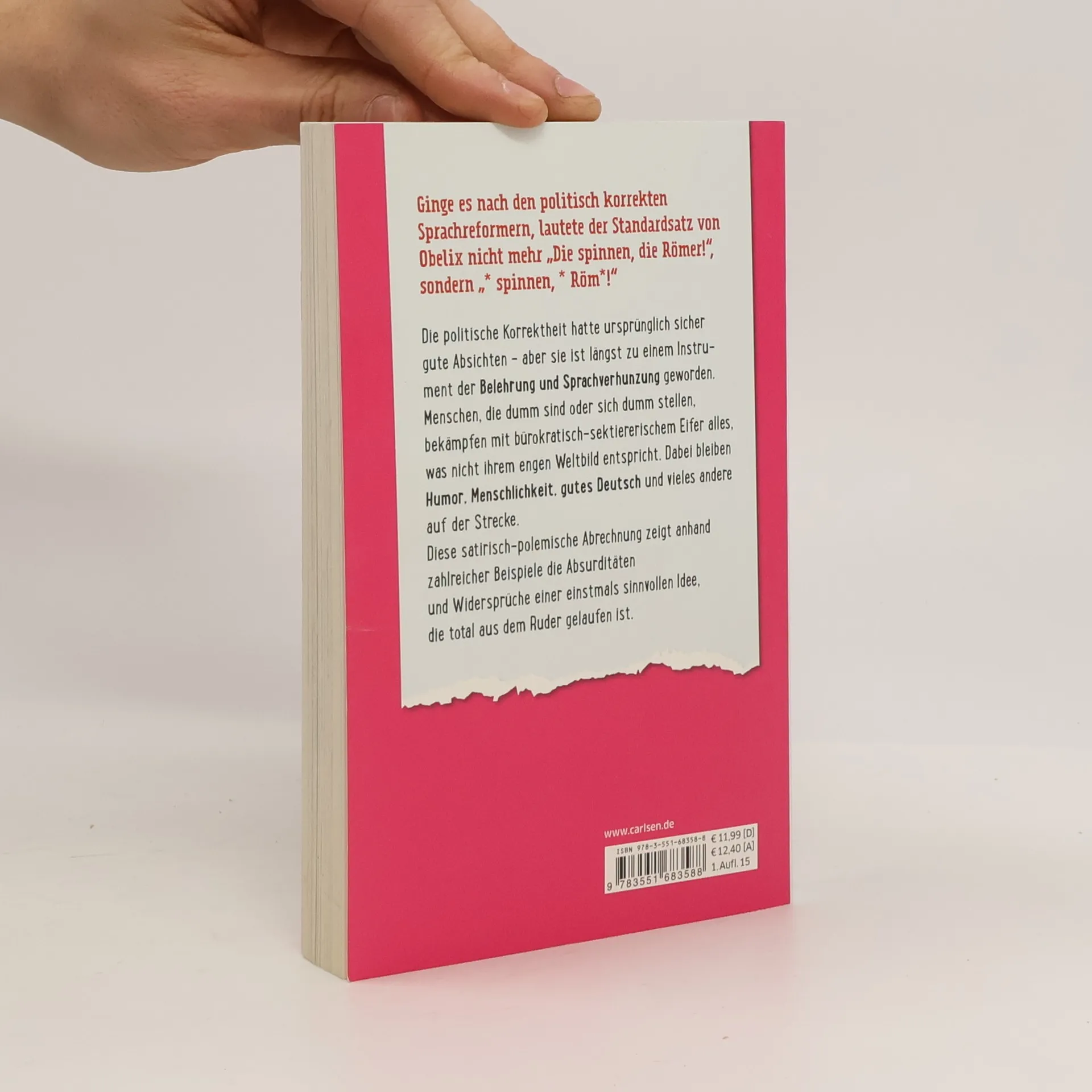 Unbestritten: Die Vertreter der politischen Korrektheit meinen es gut. Aber viel zu oft bewirken sie das Gegenteil: Frust, Genervtheit und Gehemmtheit im Umgang mit Menschen, weil niemand mehr weiß, was man sagen „darf“. Was als Rücksicht auf Schwächere begann, ist heute zu einem gedankenlos-bürokratischen Instrument geworden, mit dem Sektierer, Fanatiker und Dummköpfe absurde Sprach- und Verhaltensvorschriften erlassen. Die Folge ist unter anderem eine orwellhafte Verkümmerung der Sprache. Oder finden Sie das mittlerweile gängige Kurzwort SuS (für „Schülerinnen und Schüler“) schön als Bezeichnung für Kinder? Marius Jung zeigt in seiner satirisch-polemischen Bestandsaufnahme anhand zahlreicher kurioser Beispiele die Absurditäten und Widersprüche einer ursprünglich sinnvollen Idee, die total aus dem Ruder gelaufen ist.