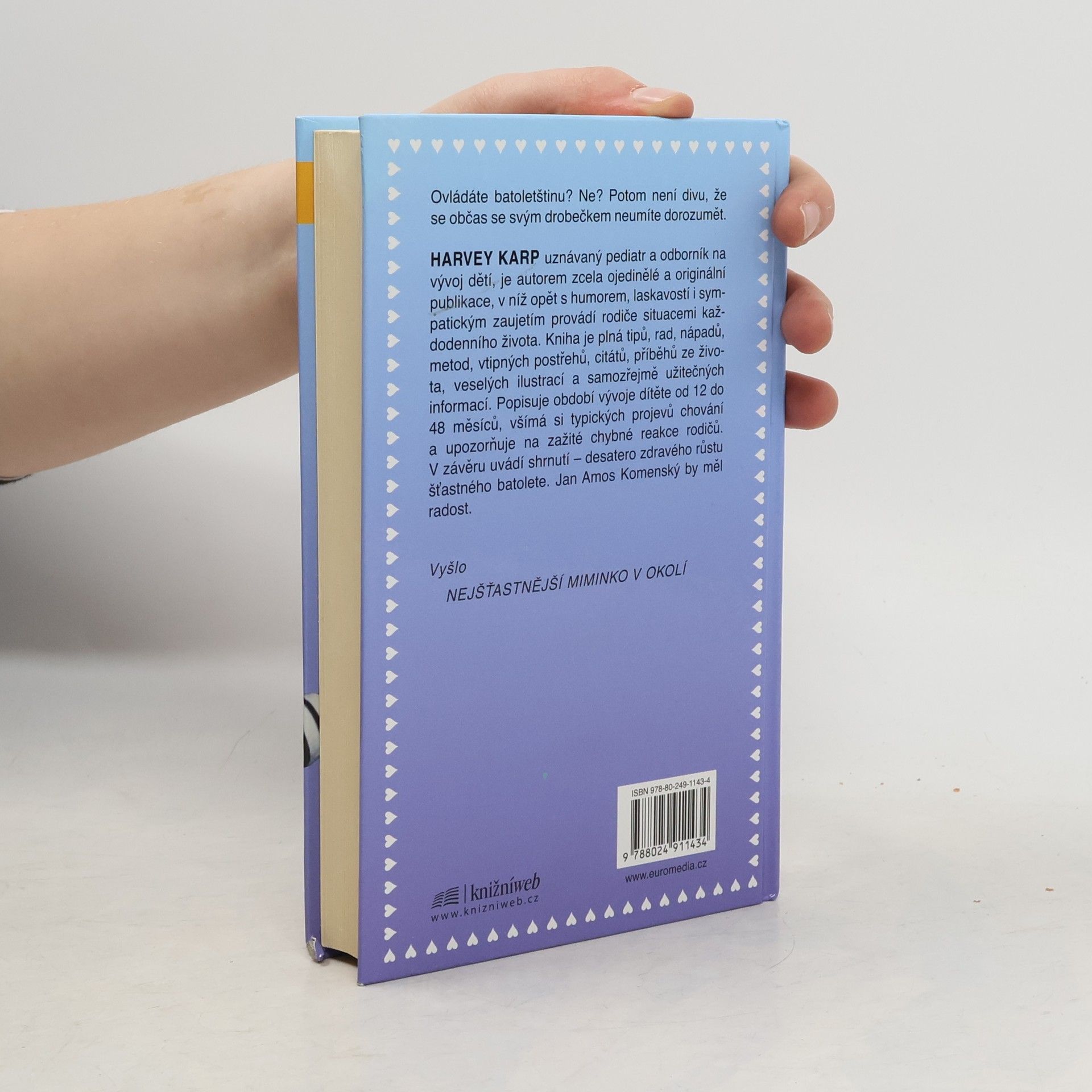 Harvey Karp, uznávaný pediatr a odborník na vývoj dětí, je autorem zcela ojedinělé a originální publikace, v níž opět s humorem, laskavostí i sympatickým zaujetím provádí rodiče situacemi každodenního života. Kniha je plná tipů, rad, nápadů, metod, vtipných postřehů, citátů, příběhů ze života, veselých ilustrací a samozřejmě užitečných informací. Popisuje období vývoje dítěte od 12 do 48 měsíců, všímá si typických projevů chování a upozorňuje na zažité chybné reakce rodičů. V závěru uvádí shrnutí - desatero zdravého růstu šťastného batolete. Jan Amos Komenský by měl radost.