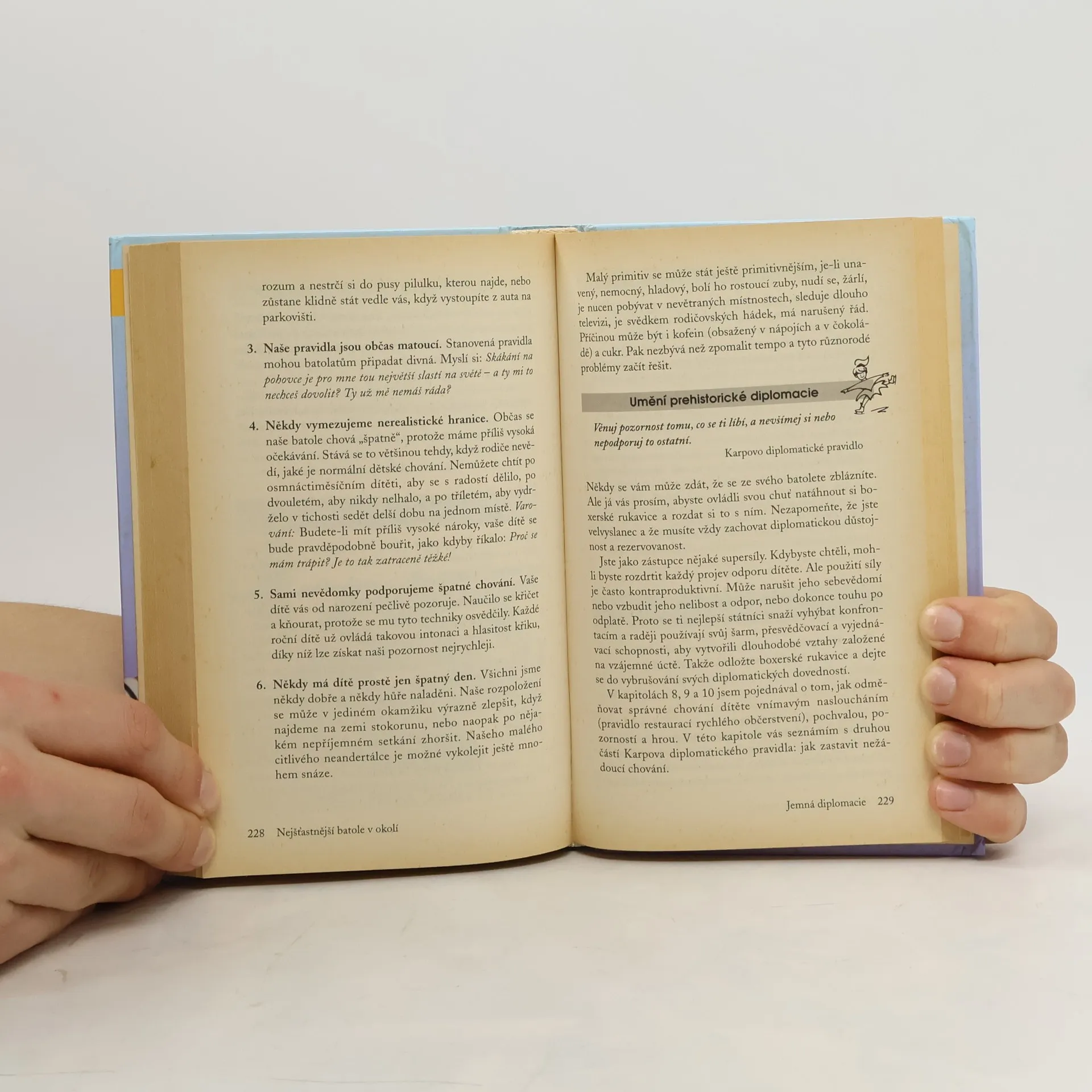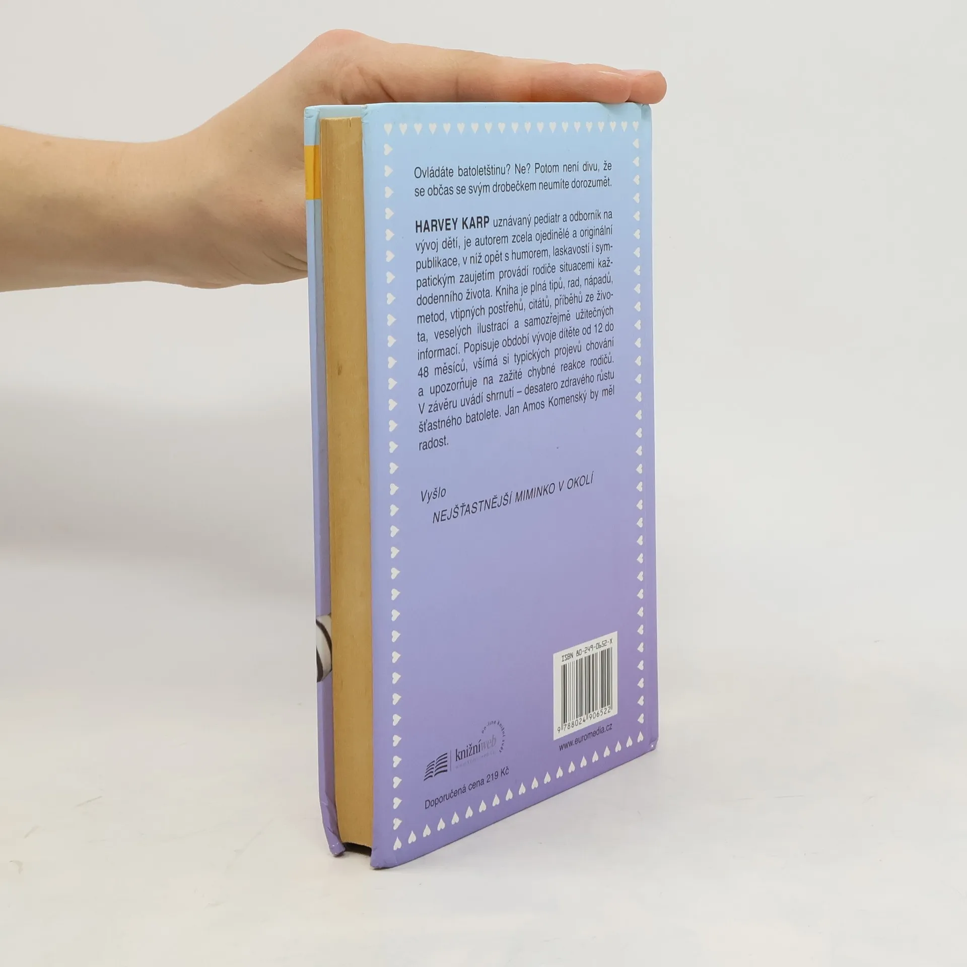 Harvey Karp, uznávaný pediatr a odborník na vývoj dětí, je autorem zcela ojedinělé a originální publikace, v níž opět s humorem, laskavostí i sympatickým zaujetím provádí rodiče situacemi každodenního života. Kniha je plná tipů, rad, nápadů, metod, vtipných postřehů, citátů, příběhů ze života, veselých ilustrací a samozřejmě užitečných informací. Popisuje období vývoje dítěte od 12 do 48 měsíců, všímá si typických projevů chování a upozorňuje na zažité chybné reakce rodičů. V závěru uvádí shrnutí - desatero zdravého růstu šťastného batolete. Jan Amos Komenský by měl radost.