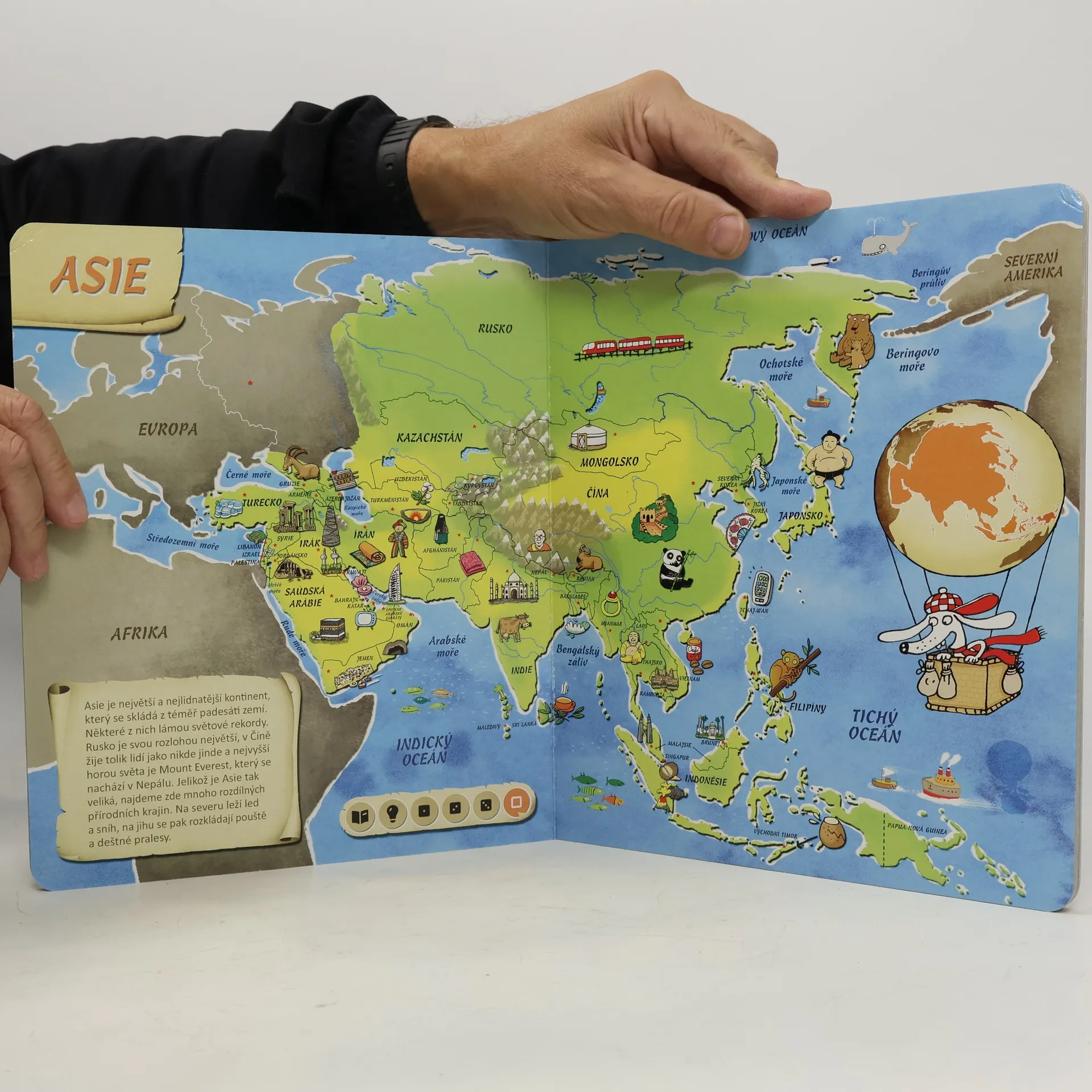 Tato kniha obsahuje osm různých map. Na jednotlivých stranách se seznámíte se všemi kontinenty, poznáte země na naší planetě a zjistíte, kde tyto země leží. Nechybí zde ani oceány, moře, velké řeky a pohoří, které jsou nedílnou součástí naší planety. Obrázky na mapách vám ukáží, jaká zvířata, stavby či jiné zajímavosti můžete v jednotlivých zemích najít. Kniha je namluvena známým českým hercem Otakarem Brouskem ml. Kniha obsahuje přes 1800 zvuků a textů.