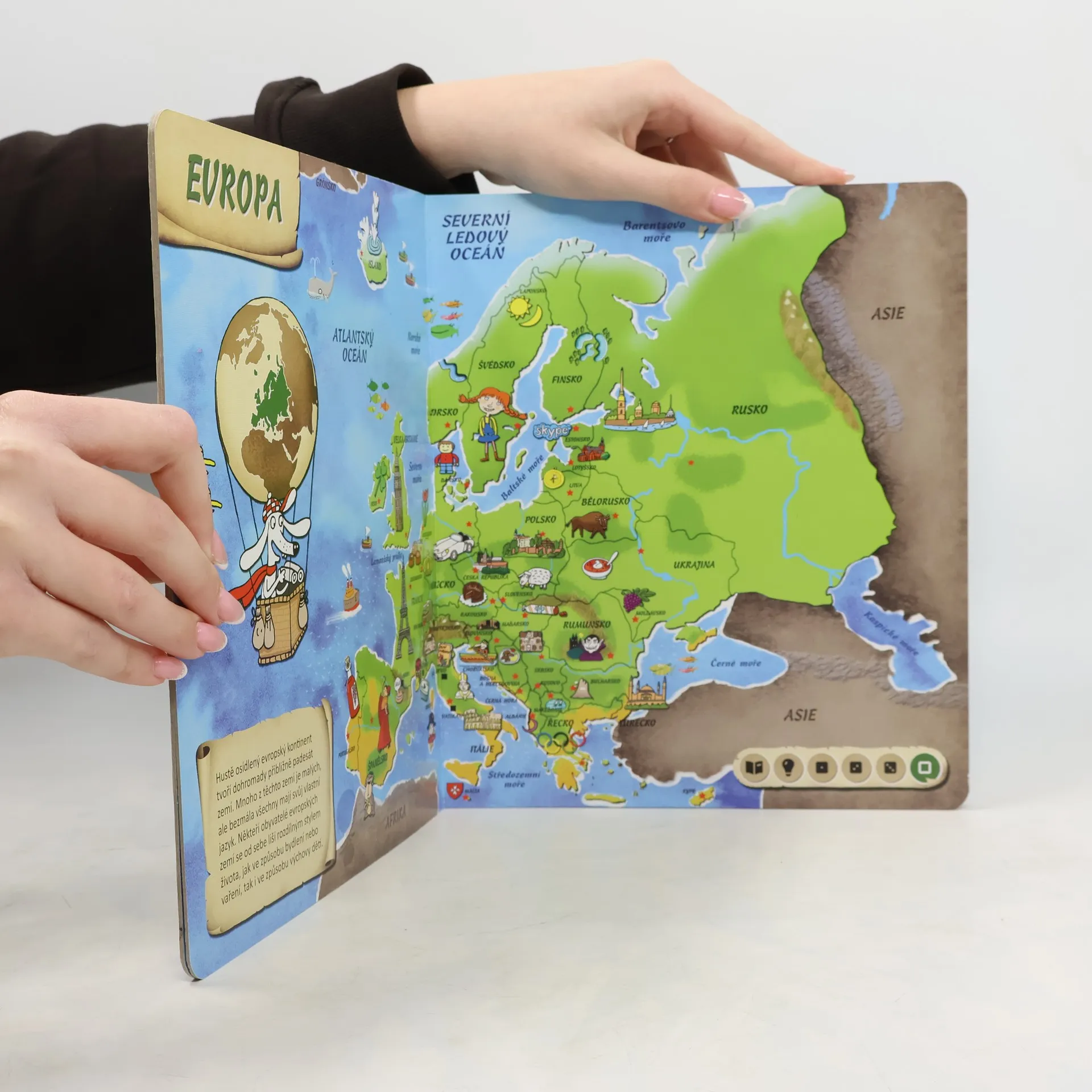 Tato kniha obsahuje osm různých map. Na jednotlivých stranách se seznámíte se všemi kontinenty, poznáte země na naší planetě a zjistíte, kde tyto země leží. Nechybí zde ani oceány, moře, velké řeky a pohoří, které jsou nedílnou součástí naší planety. Obrázky na mapách vám ukáží, jaká zvířata, stavby či jiné zajímavosti můžete v jednotlivých zemích najít. Kniha je namluvena známým českým hercem Otakarem Brouskem ml. Kniha obsahuje přes 1800 zvuků a textů.