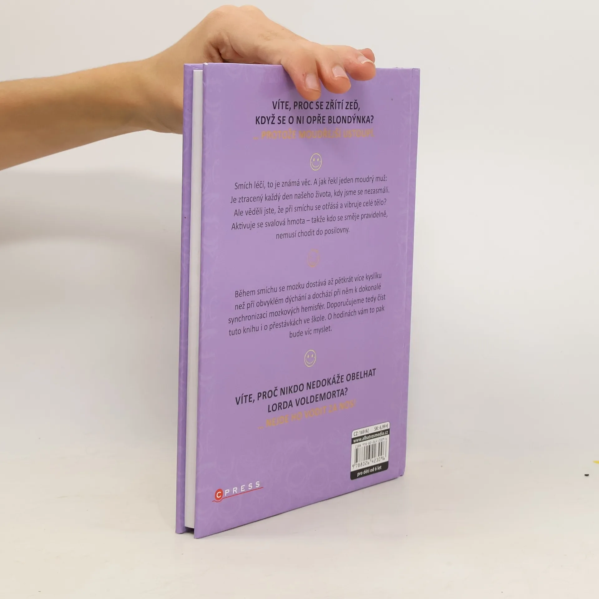 VÍTE, PROČ SE ZŘÍTÍ ZEĎ, KDYŽ SE O NI OPŘE BLONDÝNKA? … PROTOŽE MOUDŘEJŠÍ USTOUPÍ. Smích léčí, to je známá věc. A jak řekl jeden moudrý muž: Je ztracený každý den našeho života, kdy jsme se nezasmáli. Ale věděli jste, že při smíchu se otřásá a vibruje celé tělo? Aktivuje se svalová hmota – takže kdo se směje pravidelně, nemusí chodit do posilovny. Během smíchu se mozku dostává až pětkrát více kyslíku než při obvyklém dýchání a dochází při něm k dokonalé synchronizaci mozkových hemisfér. Doporučujeme tedy číst tuto knihu i o přestávkách ve škole. O hodinách vám to pak bude víc myslet.