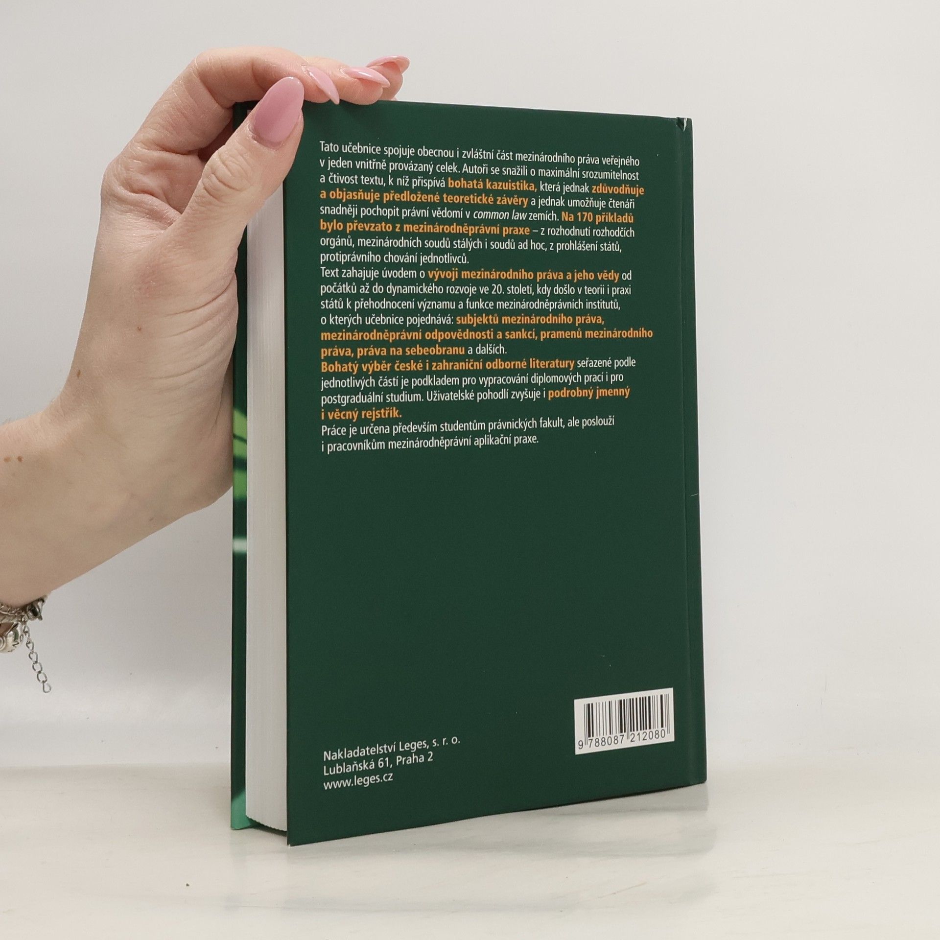 Učebnice spojuje obecnou a zvláštní část mezinárodního práva veřejného do vnitřně provázaného celku. Ve druhém vydání byly některé kapitoly přepracovány, rozšířeny či zkráceny. Autoři obohatili kazuistiku o aktuální příklady z mezinárodněprávní praxe a rozhodnutí soudů a arbitrážních orgánů. Snaží se o maximální srozumitelnost a čtivost textu, což podporuje bohatá kazuistika, jež objasňuje teoretické závěry a usnadňuje pochopení právního vědomí v common law zemích. Na 180 příkladů pochází z rozhodnutí rozhodčích orgánů, mezinárodních soudů a prohlášení států. Text začíná úvodem o vývoji mezinárodního práva od počátků po dynamický rozvoj ve 20. století, kdy došlo k přehodnocení významu mezinárodněprávních institutů, jako jsou prameny mezinárodního práva, subjekty, odpovědnost a sankce, právo na sebeobranu a další. Obsahuje bohatý výběr české a zahraniční odborné literatury, což je užitečné pro diplomové práce a postgraduální studium. Uživatelé ocení podrobný jmenný a věcný rejstřík a seznam případů. Práce je určena především studentům právnických fakult, ale také pracovníkům mezinárodněprávní aplikační praxe.