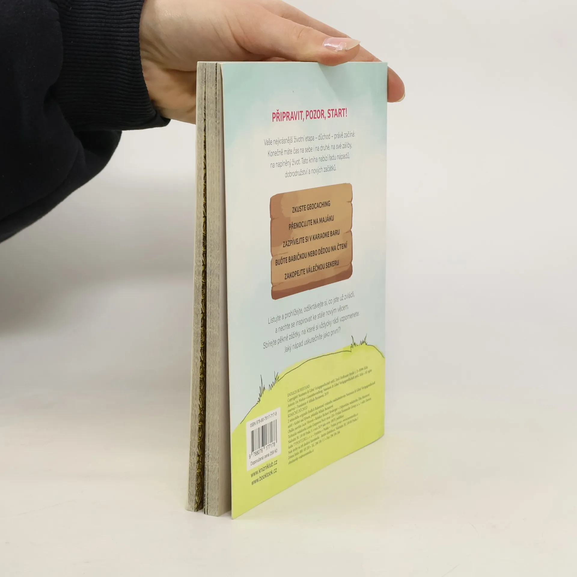 Připravit, pozor, start! Váš nejkrásnější úsek života – důchod – právě začíná: Konečně máte čas na sebe i na druhé, na své záliby, na naplněný život. Tato kniha je plná nápadů, dobrodružství a nových začátků. Listujte a prohlížejte, odškrtávejte si, co jste už zvládli, a nechte se inspirovat ke stále novým věcem. Zkusit geocaching, uspořádat rodinnou sešlost, založit si Youtube kanál nebo se zapsat do univerzity třetího věku. Jaký nápad uskutečníte jako první?