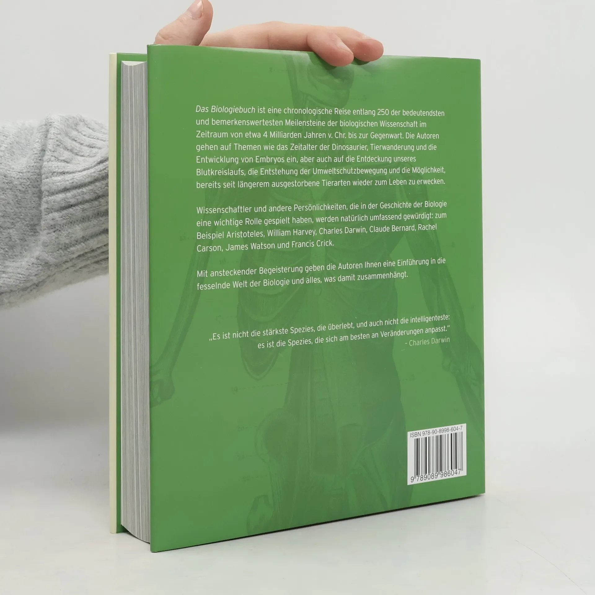 Dieses Buch nimmt Sie als Leser mit auf eine chronologische Reise, auf der Ihnen die 250 wichtigsten und bemerkenswertesten Meilensteine der Biologie begegnen. Der zeitliche Rahmen erstreckt sich von 4 Milliarden Jahre v. Chr. bis in die Gegenwart. Zu den Themen zählen Mumifizierung, Ackerbau, Migration von Tieren, natürliche Selektion, die Entwicklung von Charakterzügen („angeboren oder anerzogen?“), die Keimtheorie der Krankheit, Klimawandel, Probiotika, Cholesterinstoffwechsel und das Humangenomprojekt. Wichtige Wissenschaftler und andere einflussreiche Personen wie z. B. Aristoteles, William Harvey, Charles Darwin, Claude Bernard, Rachel Carson, James Watson und Francis Crick werden ebenfalls vorgestellt. Jedes Kapitel enthält einen kurzen Text und eine wunderschöne Farbabbildung. Im letzten Teil des Buchs findet der Leser umfangreiche Leseempfehlungen. Wenn Sie Das Biologiebuch gelesen haben, werden Sie die Welt mit anderen Augen.