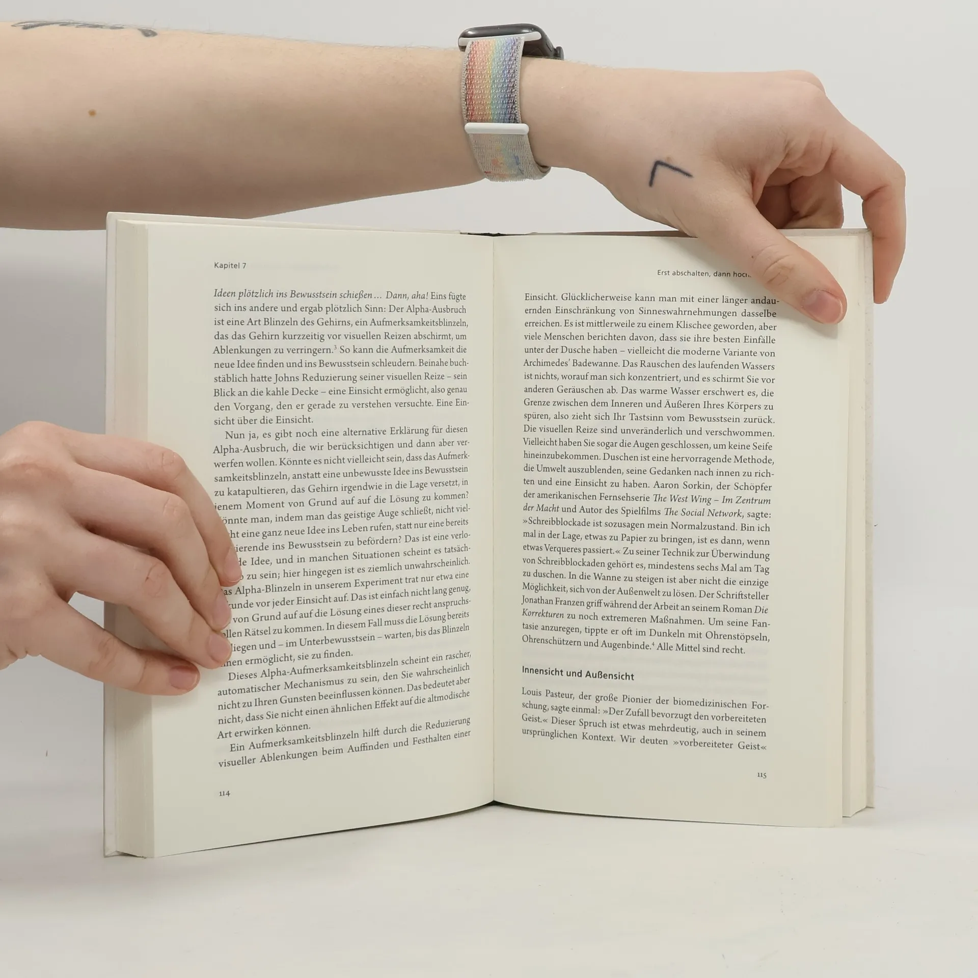 Warum wir unter der Dusche die besten Ideen habenJeder kennt das: Wir kauen ewig auf einem Problem herum und suchen eine Lösung, und lange passiert nichts. Dann plötzlich kommt die Erleuchtung. Wie aus heiterem Himmel. John Kounios und Mark Beeman, zwei der weltweit führenden Neurowissenschaftler auf dem Gebiet der Kreativität, erklären in Das Aha-Erlebnis, wie solche plötzlichen kreativen Eingebungen in unserem Gehirn zustande kommen, warum sie nicht ganz so zufällig geschehen, wie es uns scheint, und was wir tun können, um ihr Entstehen zu befördern. Neueste wissenschaftliche Erkenntnisse mit hoher Nutzanwendung, unterhaltsam und fesselnd präsentiert.